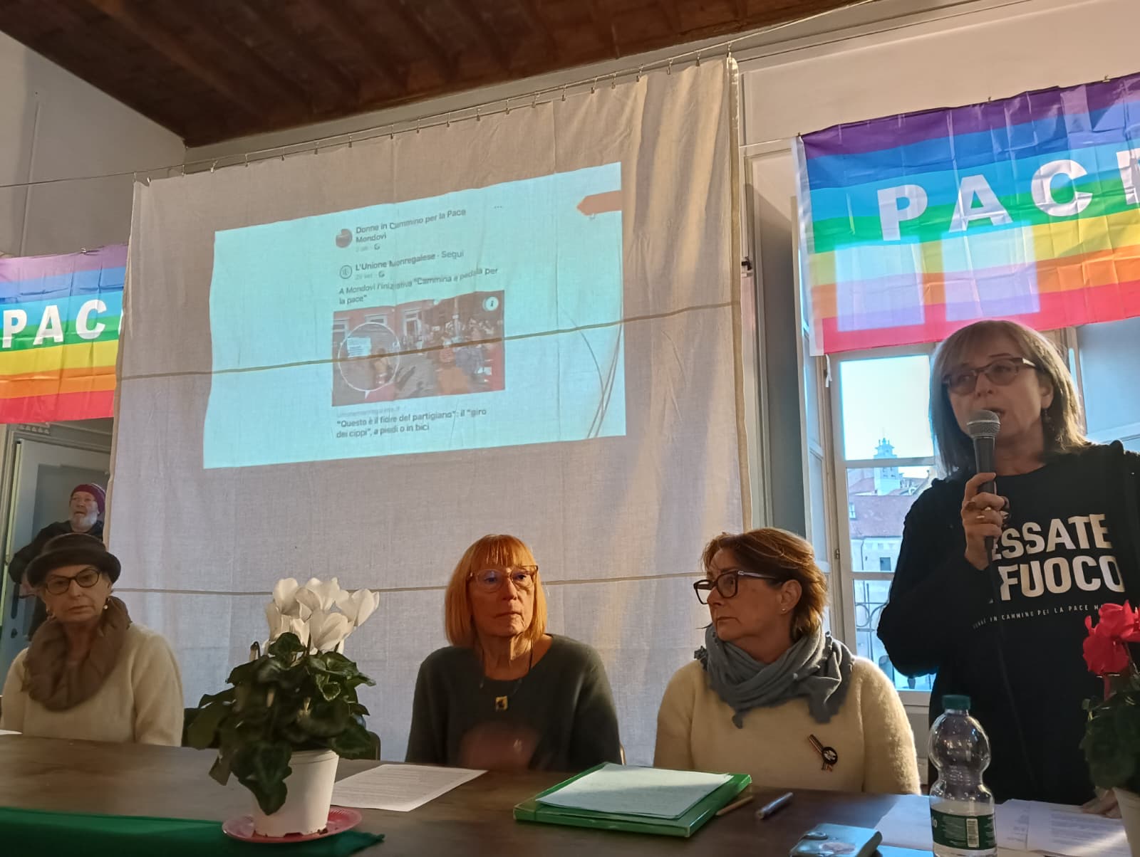 L’inaugurazione ha intrecciato arte e impegno civile. Le Donne in cammino hanno ricordato i lenzuoli della rotta migrante, le camminate e pedalate per la pace, la necessità di tornare in piazza ogni quindici giorni. “Non c’è pace senza giustizia sociale”, è stato ribadito, così come il dovere di non abituarsi all’orrore.