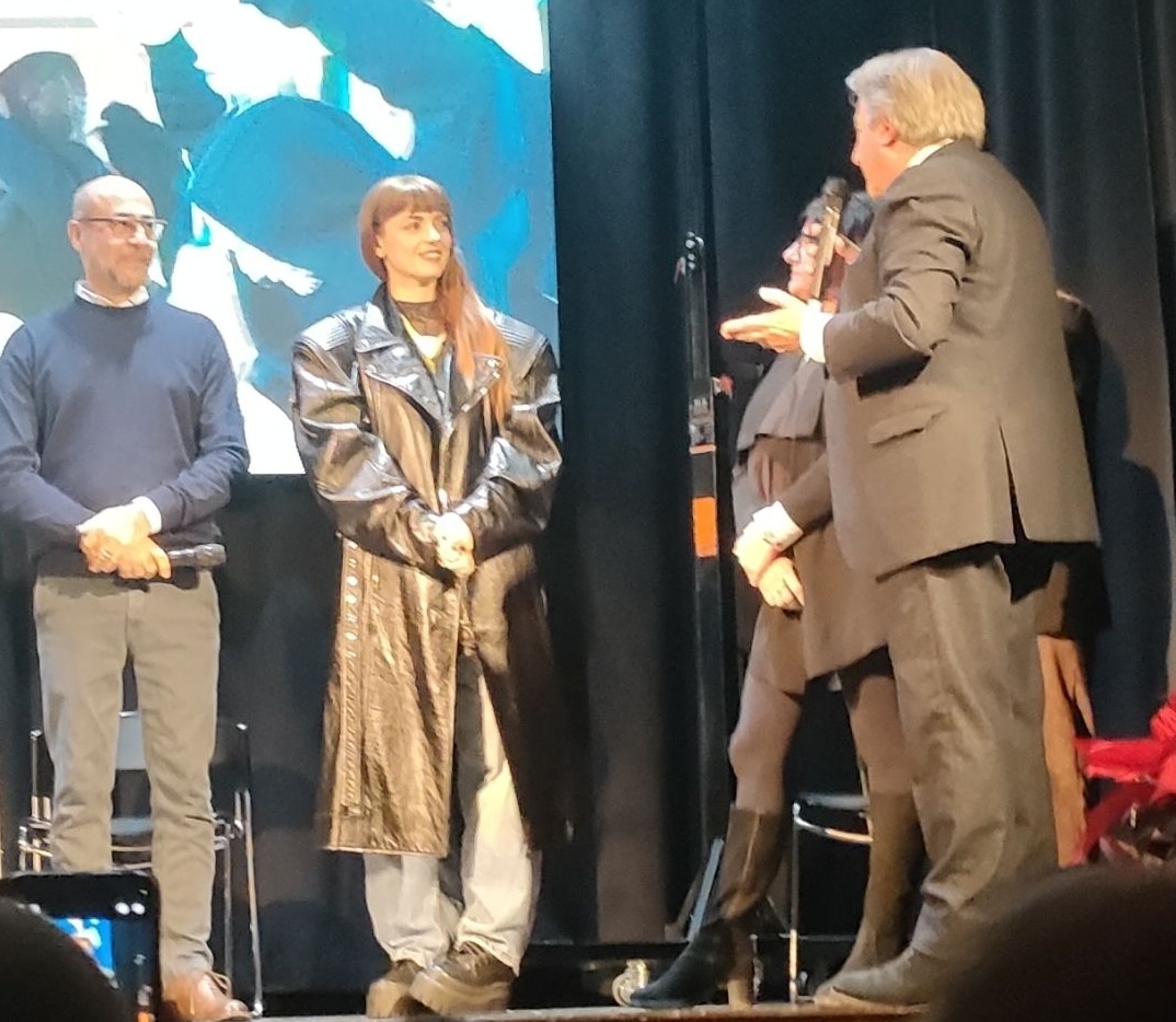 La cantante, di origine carcarese, è tornata a casa per ritirare il premio delle Chiavi della Città Calasanziana che le era stato conferito dall’Amministrazione comunale nel 2023. Seduto al suo fianco il padre Elvio e le autorità cittadine.