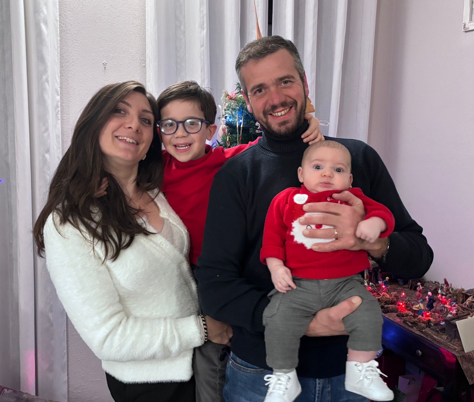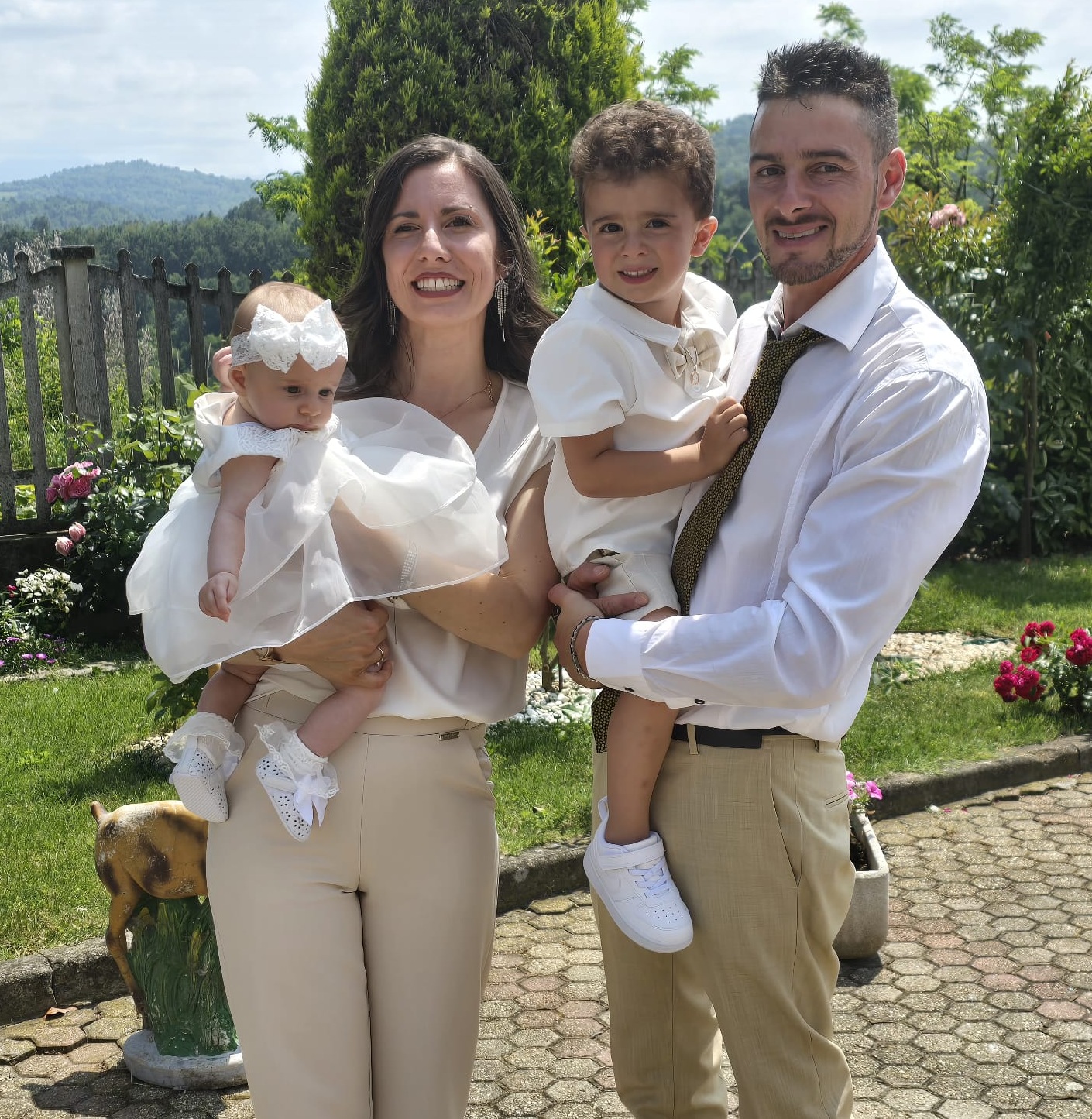 Azzurra, la prima nata a gennaio 2025, con mamma Monica papà Daniele e il fratello Dominik
