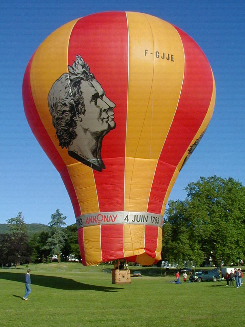 Non si tratta di una “forma speciale”, ma è comunque una mongolfiera particolare: è il pallone dedicato ai fratelli Montgolfier che il 4 giugno 1783 ad Annonay fecero alzare in aria la prima mongolfiera al mondo (che ovviamente prese il nome da loro). I colori del pallone sono quelli dello stemma di Annonay e la mongolfiera riporta la famosa immagine del profilo dei due fratelli resa celebre dall’artista Jean-Antoine Houdon. È pilotato da Vincent Bruno, veterano del Raduno di Mongolfiere dell’Epifania, che spesso sale in cesta con abiti storici.
