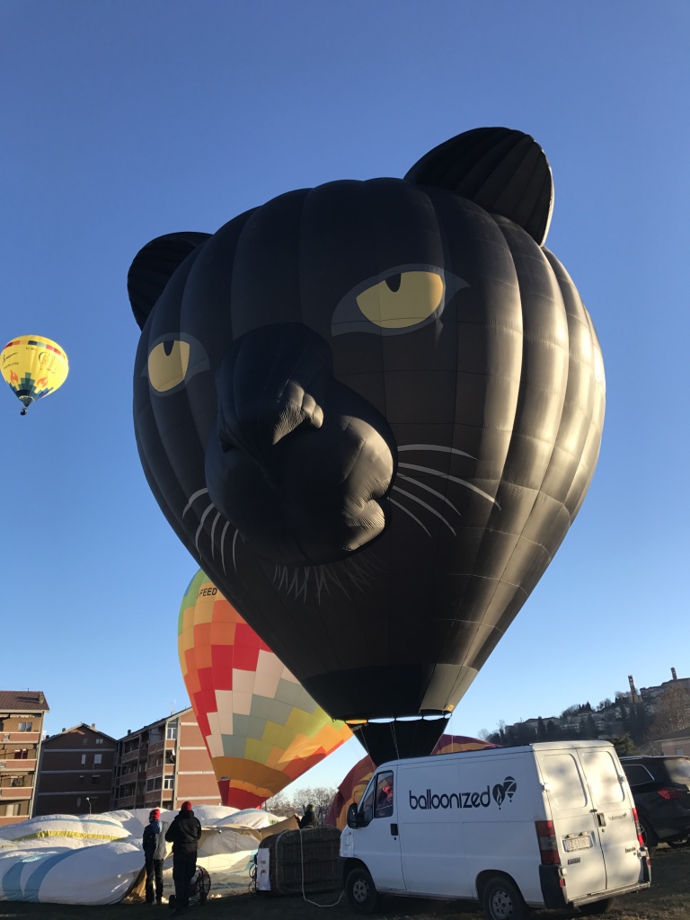 La grande pantera nera pilotata dal britannico Andrew Holly torna a Mondovì dopo aver entusiasmato il pubblico nel 2019. Andrew Holly è un pilota che frequenta il Raduno dell’Epifania da molti anni, portando nella città di Mondovì mongolfiere di ogni forma e colore, della sua scuderia volante che ha battezzato “SkySafari”.