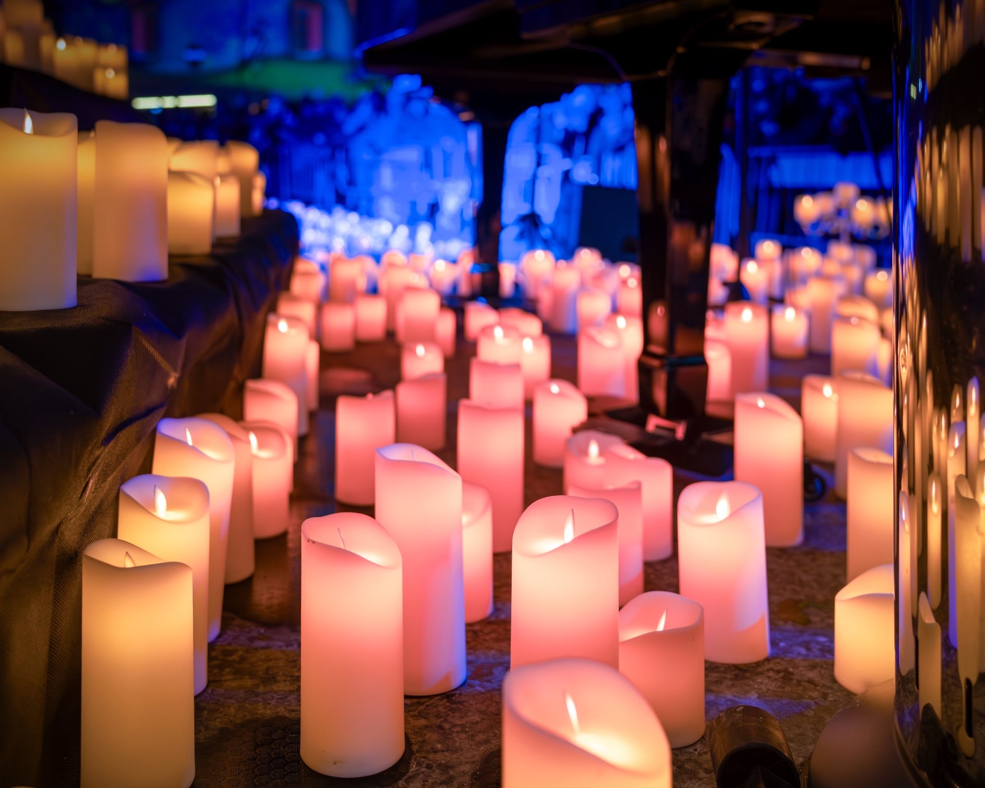 L’allestimento, curato nei minimi dettagli, ha richiesto l’impegno di sei persone che per quasi tre ore hanno lavorato all’accensione delle candele.