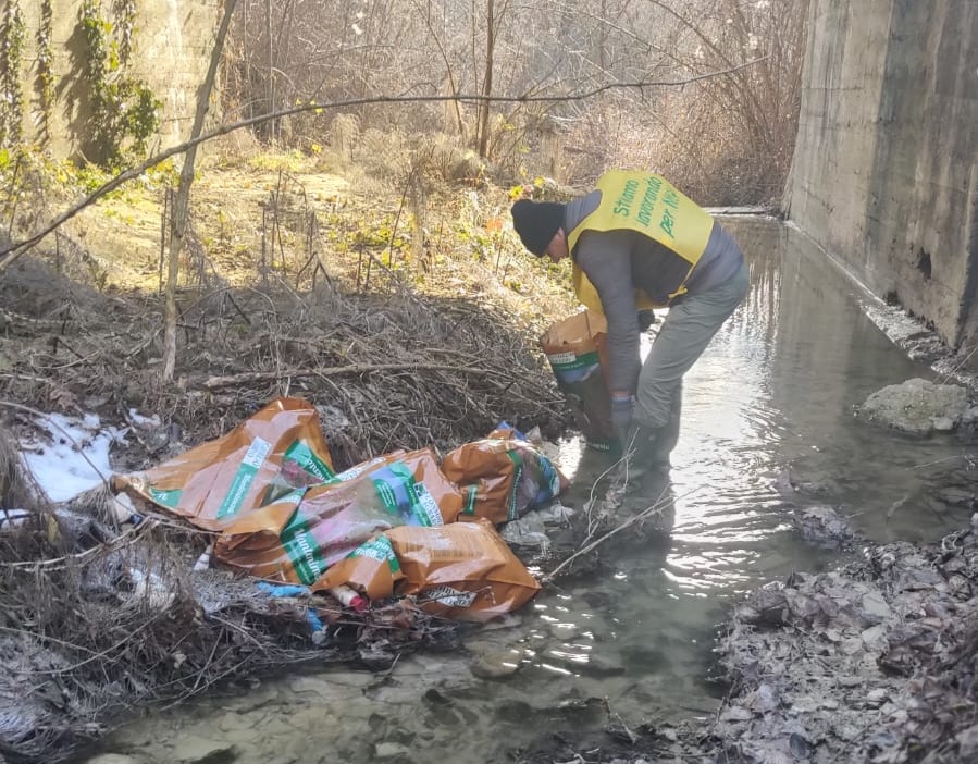 Durante l’operazione sono stati rimossi 5 sacchi di RSU e 6 sacchi da 20 chilogrammi di crocchette per cani, utilizzati impropriamente da qualcuno come contenitori di rifiuti e poi abbandonati. All’interno sono stati rinvenuti numerosi scarti casalinghi: scarpe, prodotti per la cosmesi, scatolame, pentole, lattine, bottiglie e avanzi di cibo, tutti materiali abbandonati nell’alveo del rio.