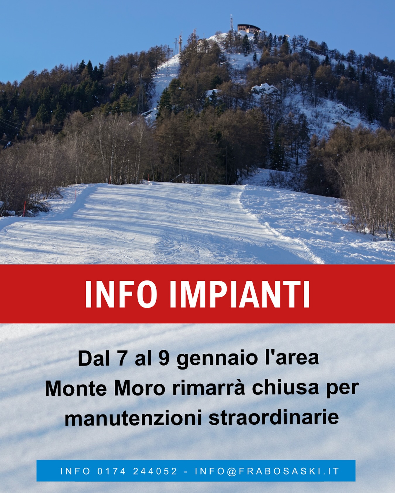 Qualche giorno di pausa per tornare al top. Dal 7 al 9 gennaio l’area Monte Moro resterà chiusa al pubblico per consentire interventi di manutenzione straordinaria sulle piste e operazioni di innevamento artificiale, fondamentali per garantire condizioni di sci ottimali e maggiore sicurezza per tutti.