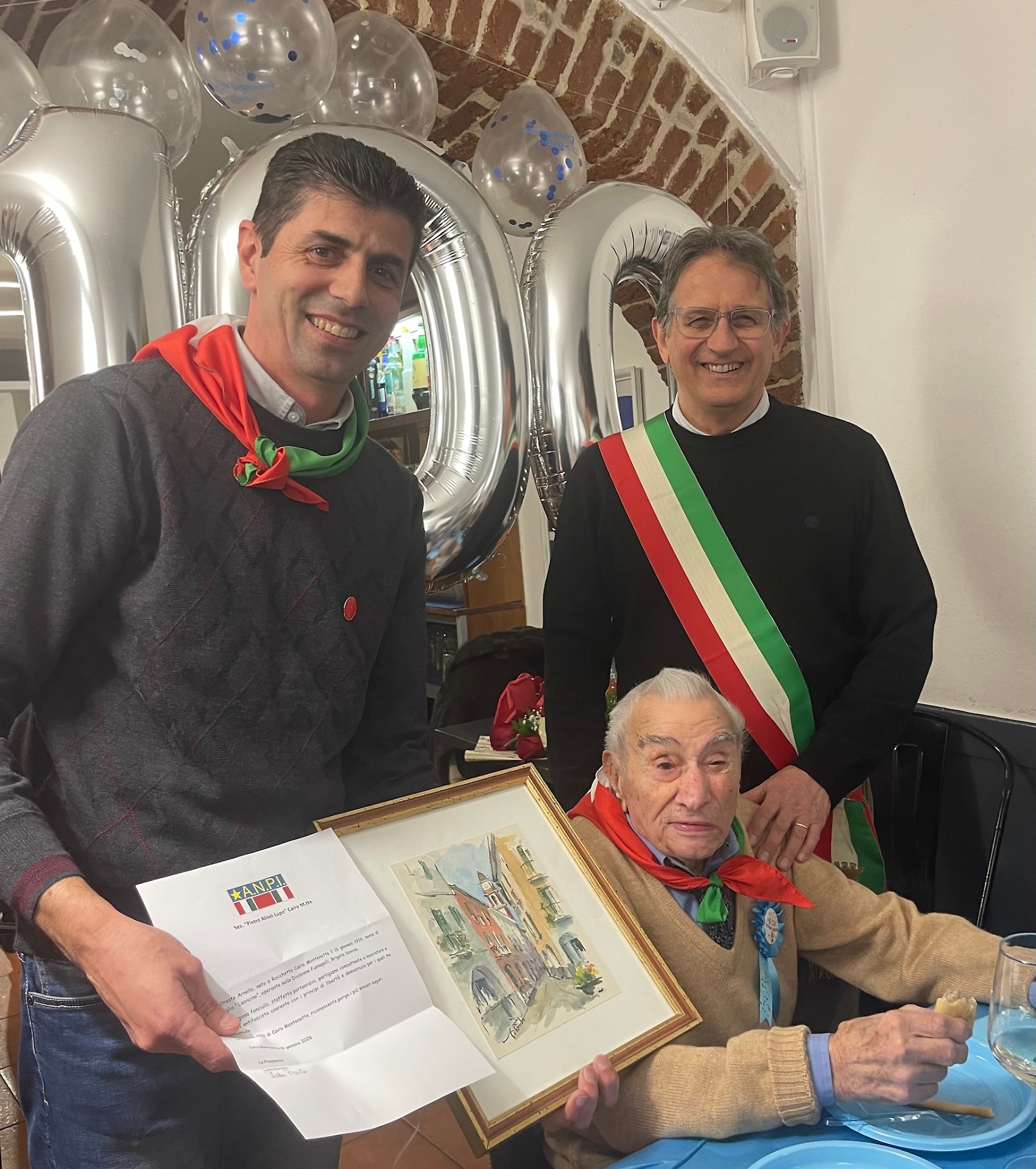 Immancabili gli auguri della sezione ANPI di Cairo Montenotte, rappresentata per l’occasione da Alberto Poggio, che ha portato il saluto della Presidente Leda Bertone: «Da coraggioso fanciullo, staffetta portaordini, partigiano combattente a lavoratore e cittadino antifascista coerente con i principi di libertà e democrazia per i quali ha combattuto. A lui va il nostro ringraziamento».