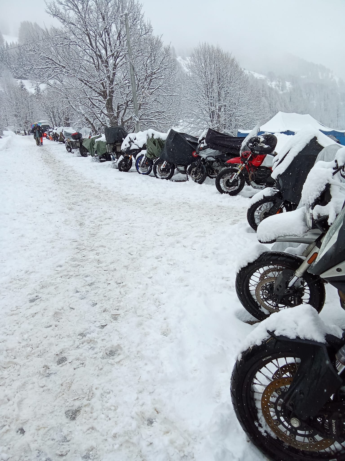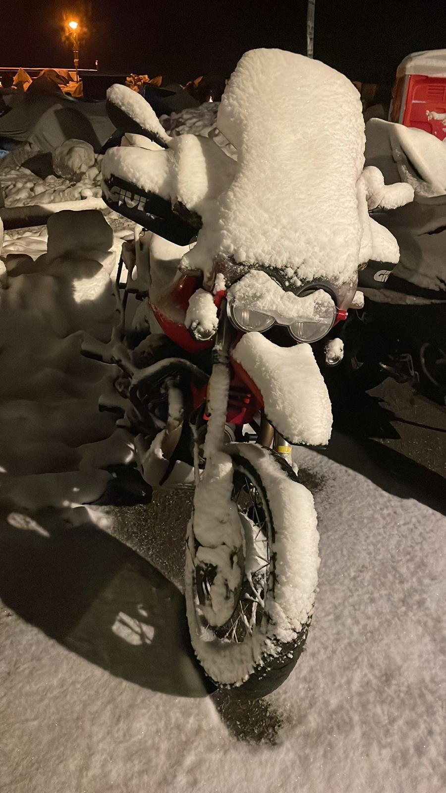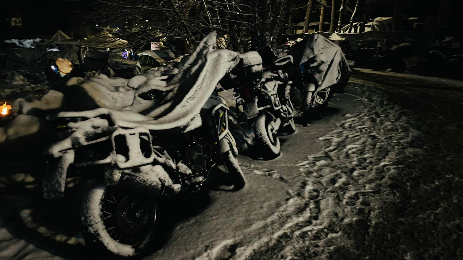 Dalla Spagna alla Germania, dalla Svizzera fino a ogni angolo della Penisola, i centauri sono arrivati a Pontechianale in sella alle loro moto, affrontando strade innevate e condizioni meteo estreme. Un viaggio che è già impresa, prima ancora della festa. Una volta giunti a destinazione, molti di loro hanno scelto di pernottare in tenda, sotto la neve, trasformando l'area in una suggestivo accampamento bianco. Con il passare delle ore, le moto parcheggiate sono state lentamente inghiottite da una spessa coltre nevosa, diventando parte integrante del paesaggio.