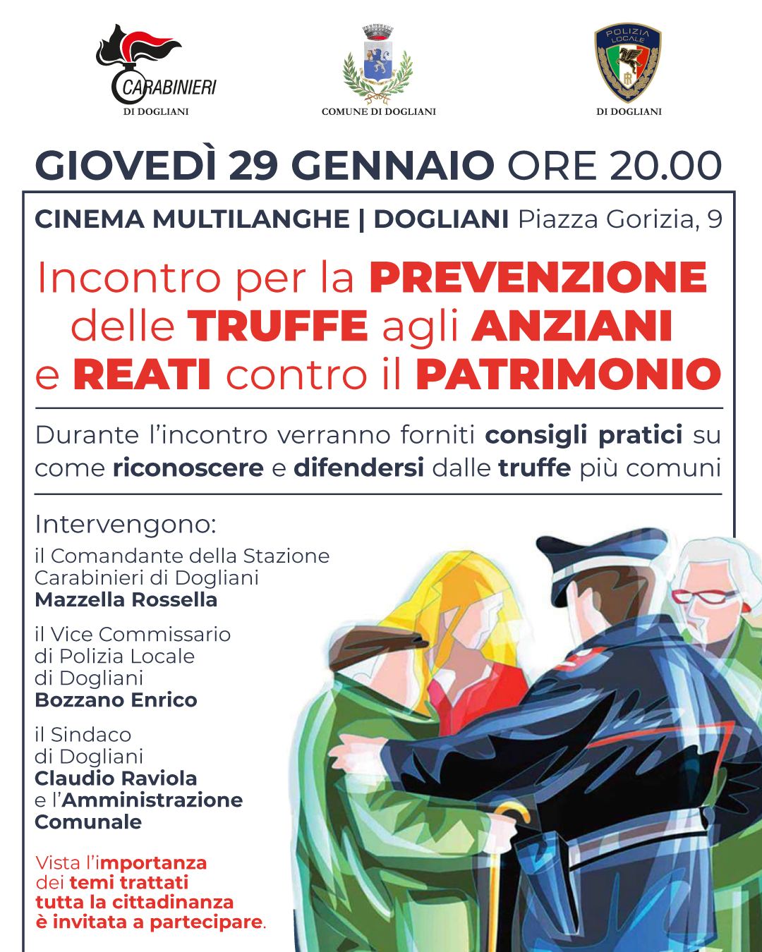 Il Comune di Dogliani organizza un incontro di prevenzione per le truffe agli anziani e i reati contro il patrimonio, in collaborazione con i Carabinieri e la Polizia locale.