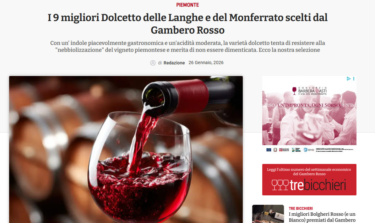 La prestigiosa rivista enogastronomica Gambero Rosso ha appena pubblicato una selezione dedicata ai “9 migliori Dolcetto delle Langhe e del Monferrato” nell’ambito delle degustazioni 2026, ponendo i riflettori su uno dei vitigni più tradizionali e rappresentativi del nostro territorio piemontese.