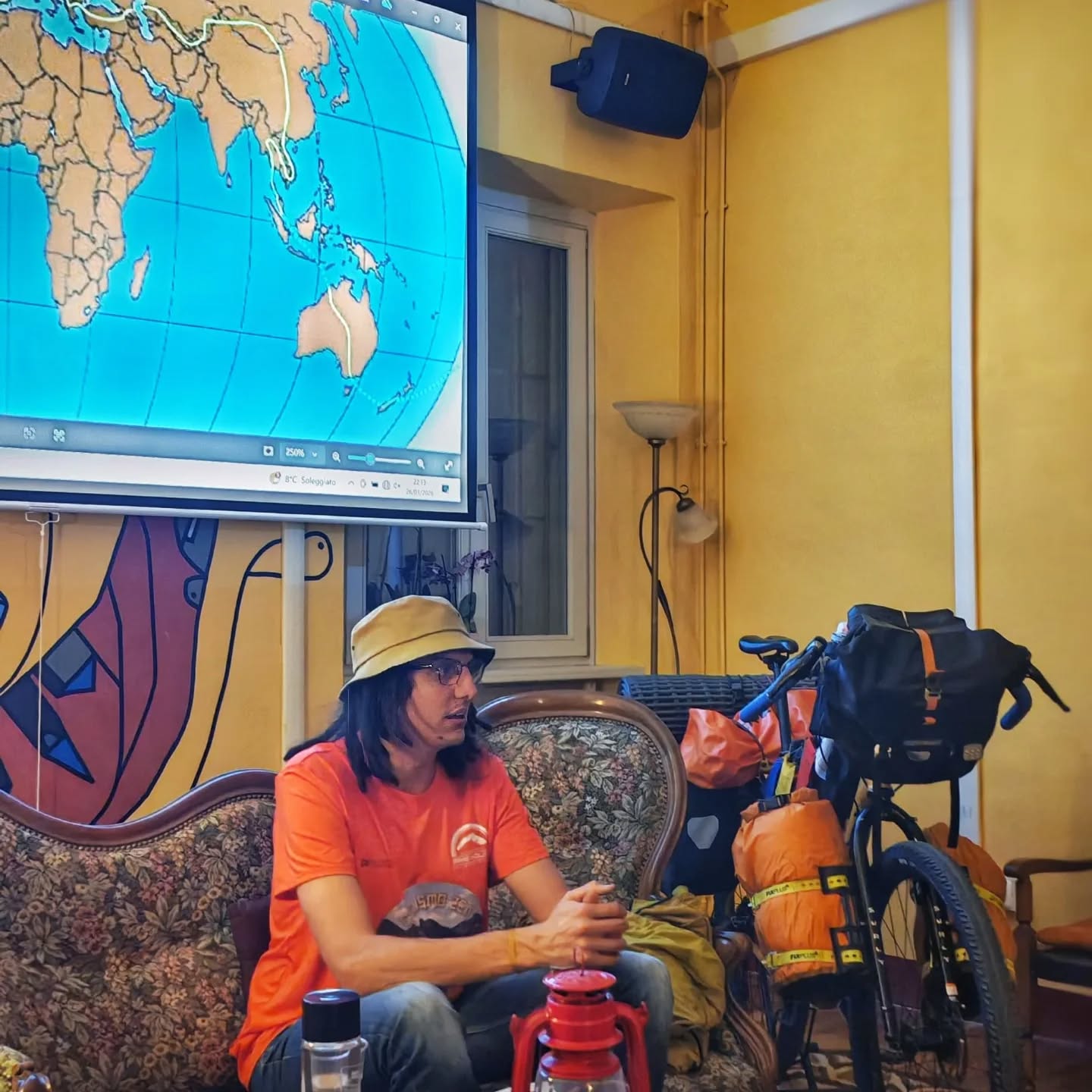 Accanto a lui, fedele compagna di strada, Stella: una bicicletta gialla, tutta d’acciaio, senza ammortizzatori. Essenziale, resistente, autentica. Proprio come lo spirito di questo viaggio.