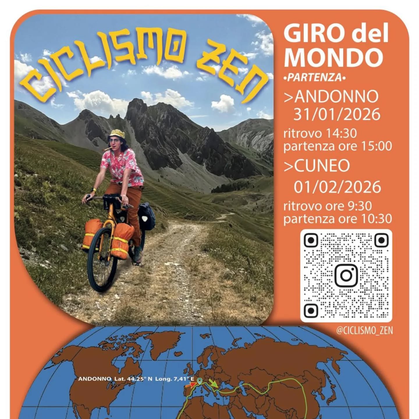 Da Cuneo in poi, la rotta punterà verso sud e poi a est, lungo strade, continenti e incontri ancora tutti da scrivere. Giorno dopo giorno sarà possibile seguire l’avventura di Simone sui social: su Facebook (Simone Avataneo) e su Instagram (@ciclismo_zen).