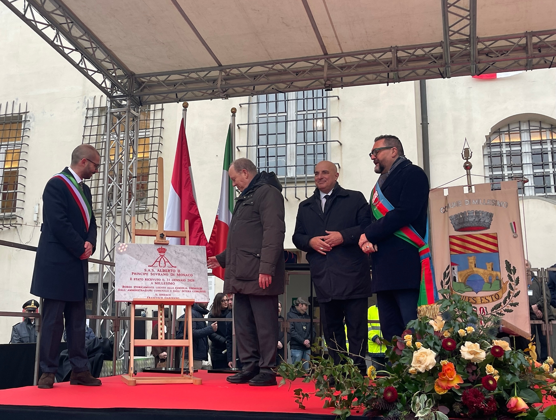 Sabato 31 gennaio il Borgo ha scritto una delle pagine più prestigiose della sua plurisecolare storia. In occasione delle celebrazioni per gli 820 anni dalla fondazione (1206-2026), la comunità ha avuto l'onore di accogliere in visita ufficiale Sua Altezza Serenissima il Principe Alberto II di Monaco. L'evento sancisce ufficialmente l'ingresso di Millesimo nella rete internazionale dei "Siti Storici Grimaldi di Monaco", unendo il passato medievale del borgo al legame con la Casata monegasca.