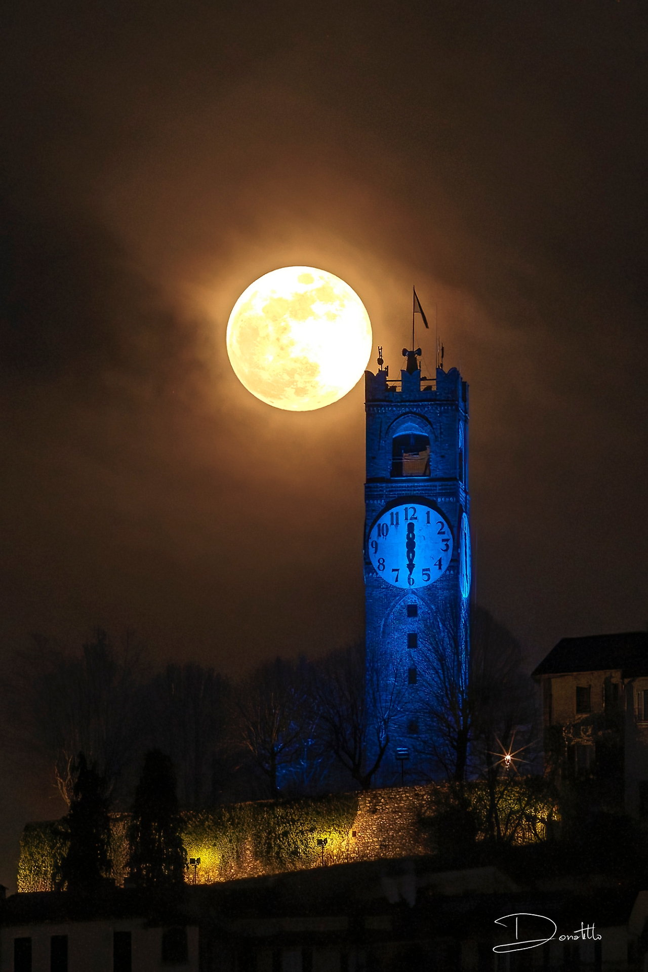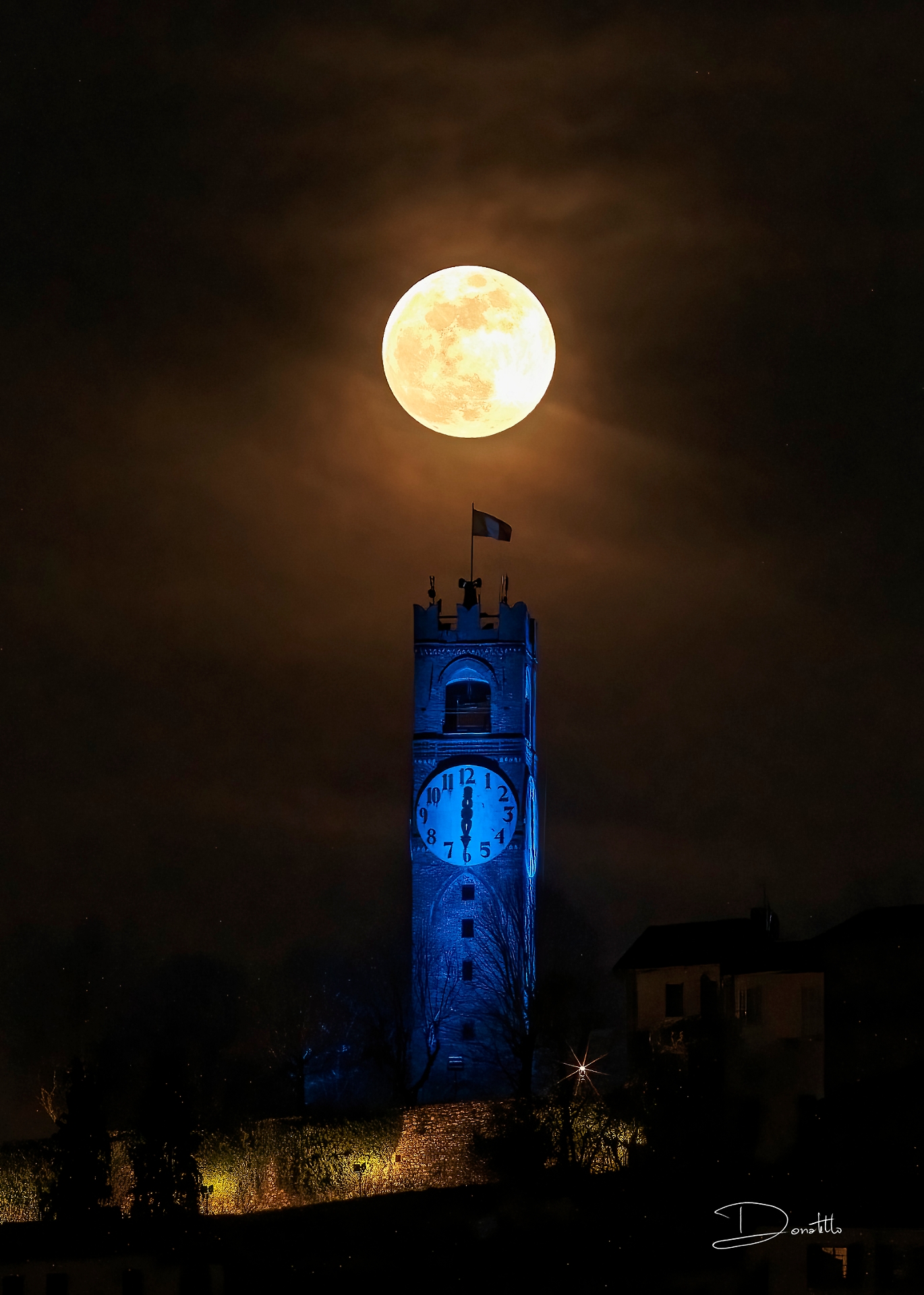 La luna piena della neve, grazie al meteo perfetto di ieri sera domenica 1 febbraio, ha offerto un panorama straordinario che ha acceso la fantasia e la creatività di tanti fotografi. Abbiamo proposto lo scatto di Mattia Boero sopra Ormea e stamattina le fotografie realizzate da Donatello Diaspro a Mondovì, combinando due elementi particolari: la luna piena e la torre illuminata di blu.