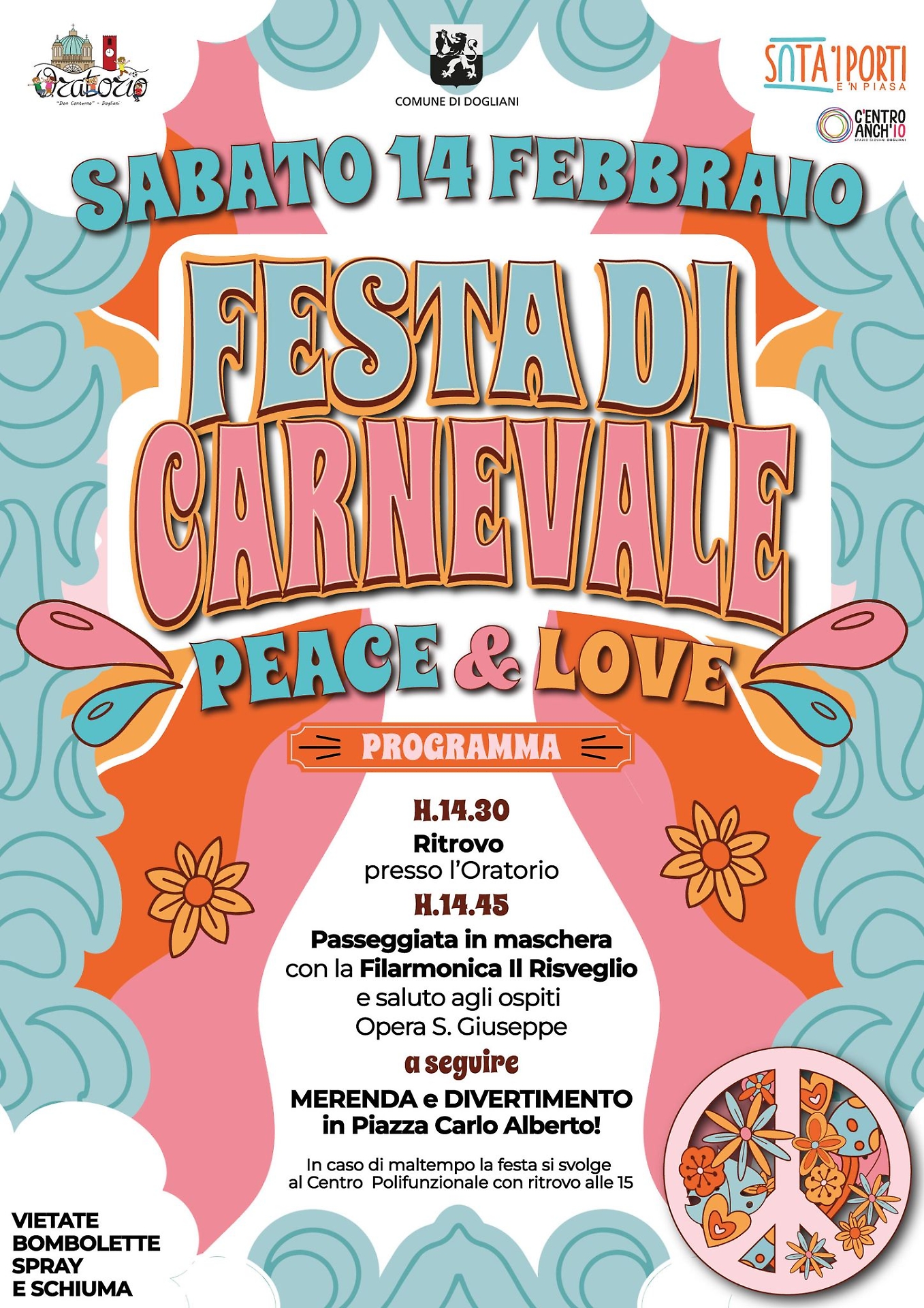 Il tema scelto per l’edizione 2026 è “Peace & Love”, un invito a riscoprire valori positivi come la pace, l’amicizia e la solidarietà, da esprimere anche attraverso maschere e costumi ispirati a colori, fiori e simboli di armonia.