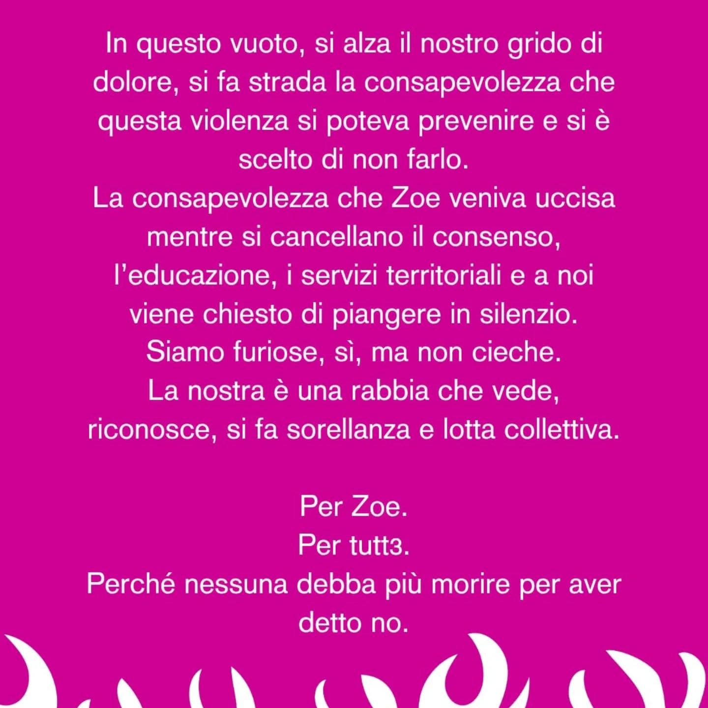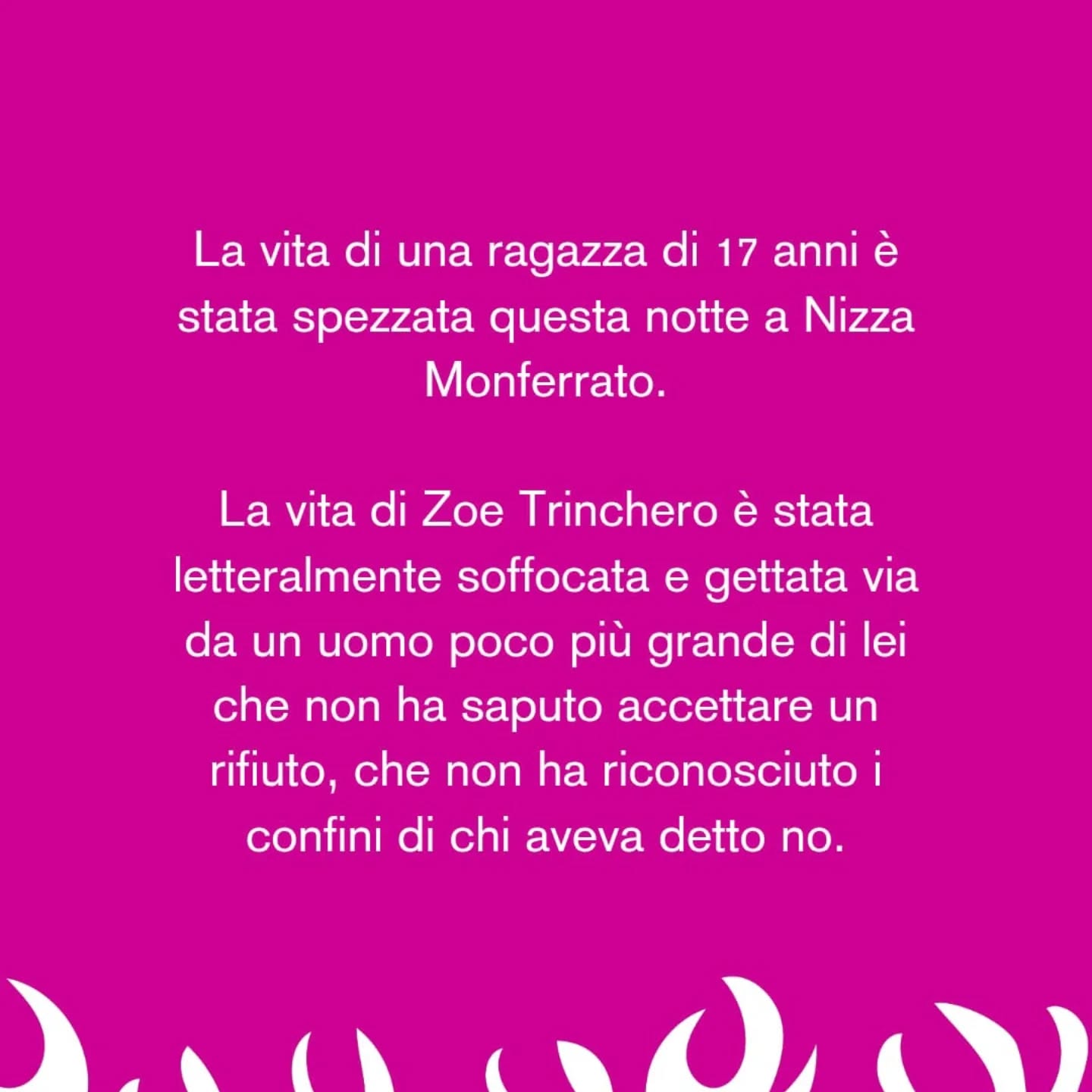 Questa sera Asti si sta riunendo in piazza San Secondo per un momento di protesta e consapevolezza dedicato a Zoe Trinchero la giovane 17 vittima di un omicidio. A promuovere l’iniziativa è il collettivo Non Una di Meno Asti, che invita cittadine e cittadini a trasformare lo sgomento e la sofferenza in un’occasione pubblica di confronto sulla violenza di genere.