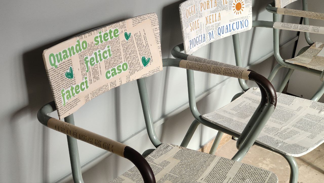 Tra le novità ecco un’“Aula delle Meraviglie”, dove anche le sedie invitano a «portare oggi il sole nella pioggia di qualcuno» o a «farci caso quando si è felici». Perché, come ricorda la frase sullo sfondo blu cielo, «ognuno di noi ha una favola dentro che non riesce a leggere da solo».