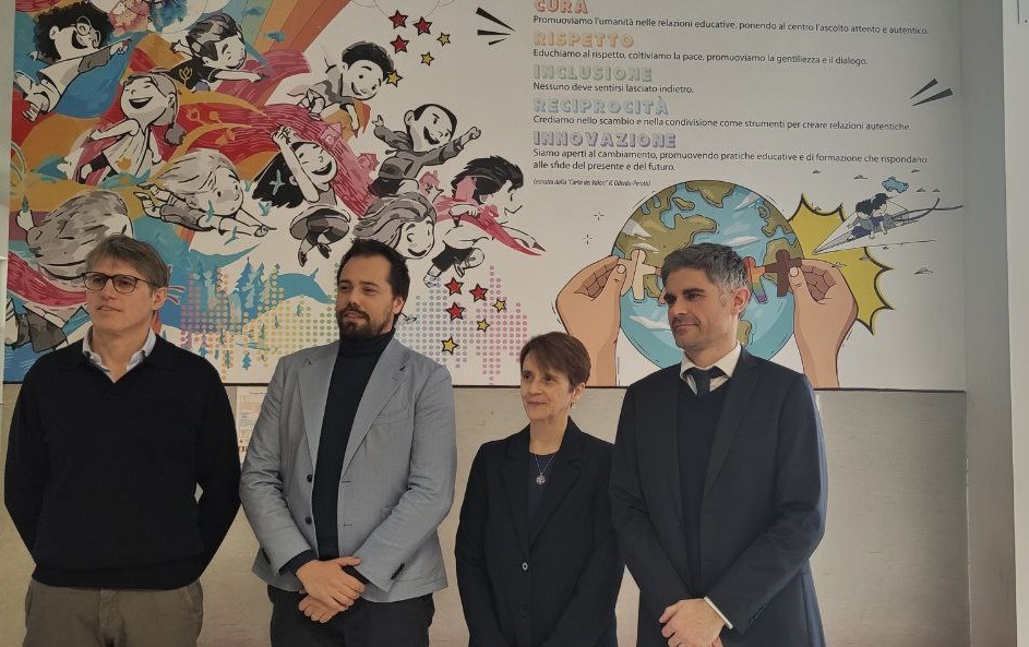 Venerdì mattina docenti, personale, studenti, genitori e autorità si sono radunati al terzo piano dell’edificio per svelare tutte le novità. Una cerimonia partecipata in un allegro e bel vociare. «Educare nel bello e al bello per imparare meglio», ha esordito la dirigente scolastica Loredana Montemurro. «Abbiamo cercato di costruire la Scuola in cui crediamo come un puzzle. Alla fine, guardando la visione completa, sarà ancora più chiara l’identità». Sui muri è stata stampata anche la Carta dei Valori dell’istituto, con le sei parole chiave: «Accoglienza, cura, rispetto, inclusione, reciprocità, innovazione».