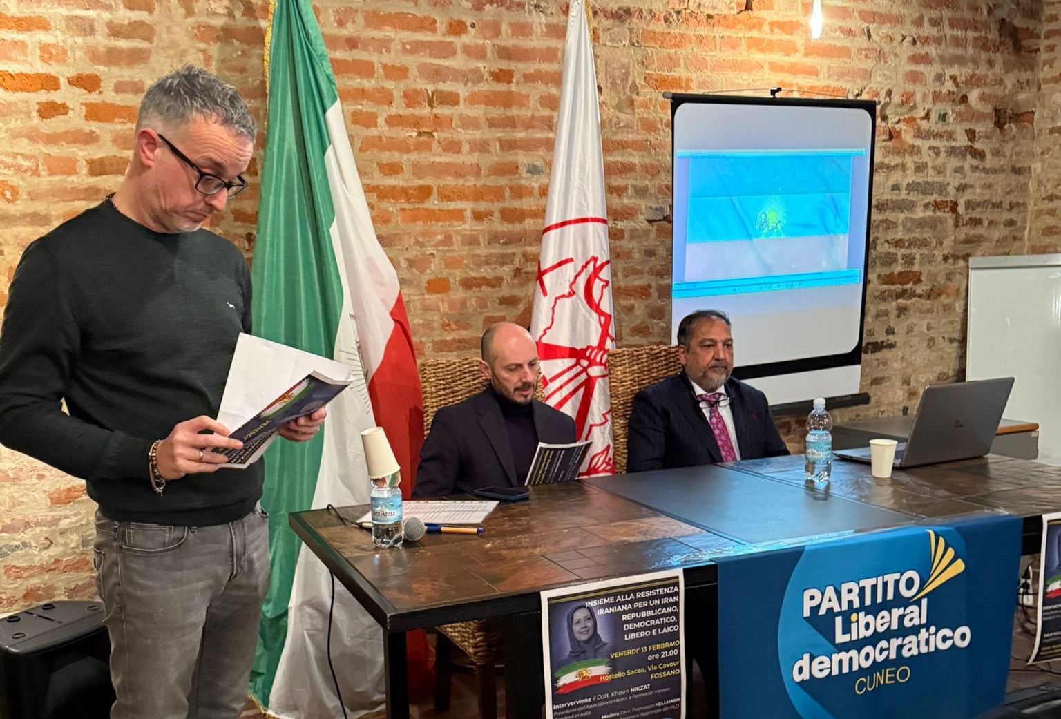 Si è svolta ieri sera, 13 febbraio, a Fossano, una partecipata serata dedicata alla situazione in Iran e al sostegno della resistenza iraniana, promossa insieme al Partito Liberal Democratico. Al centro dell’incontro, i dieci punti programmatici presentati da Maryam Rajavi, leader del Consiglio Nazionale della Resistenza Iraniana, per una futura repubblica democratica, libera e laica.