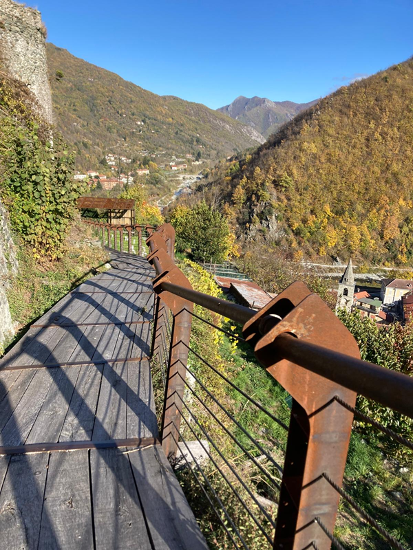 Tutti i siti risultano accomunati dall’adozione di elementi metallici di egual disegno, concepiti quali segni contemporanei coerenti e riconoscibili, capaci di unire in un unico fil rouge progettuale gli emergenti storici più significativi della valle. Parallelamente, una specifica azione ha consentito il ripristino e la delimitazione dei percorsi di connessione tra i Borghi e i Castelli, favorendo sia l’accessibilità sia la valorizzazione dell’antica rete sentieristica, oggi dotata di cartellonistica identificativa.