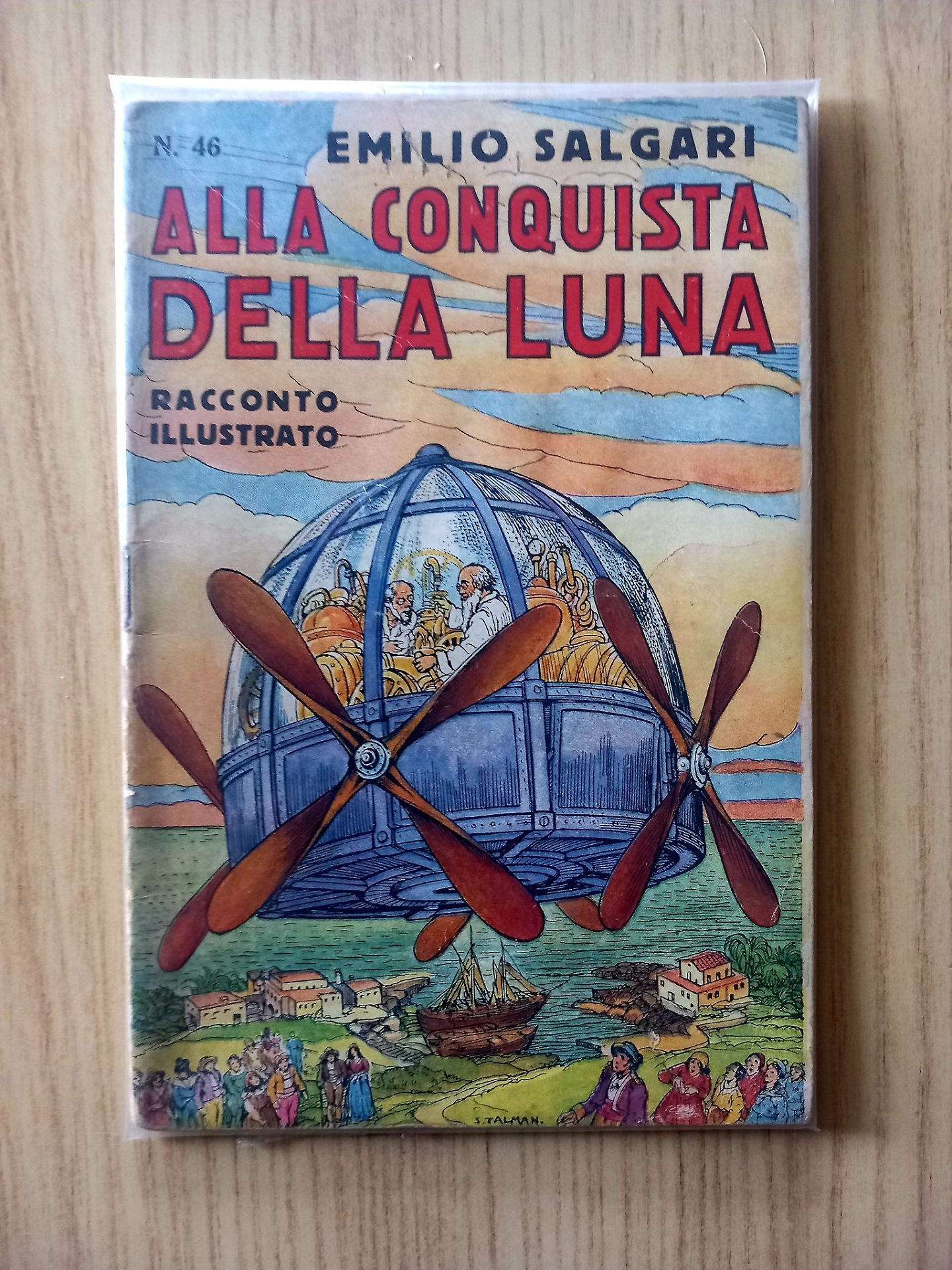 La prima edizione autonoma avviene per Sonzogno, nel 1936, in una collana in cui le opere di Salgari venivano presentate come perfette per i giovani fascisti, stando alla sintetica pagina di prefazione, perché esse esaltano il "genio italico", segno di “razza superiore” (menzione esplicita del testo). In verità in questo racconto di italiani non si vede l'ombra e anche lo scienziato spaziale / astronauta è tutto tranne un superuomo marinettiano. Resta però la bella copertina steampunk, con un'astronave ormai improbabilissima per le conoscenze tecnologiche di quegli anni, e per questo aspetto ci pare più giusto ricordarlo.