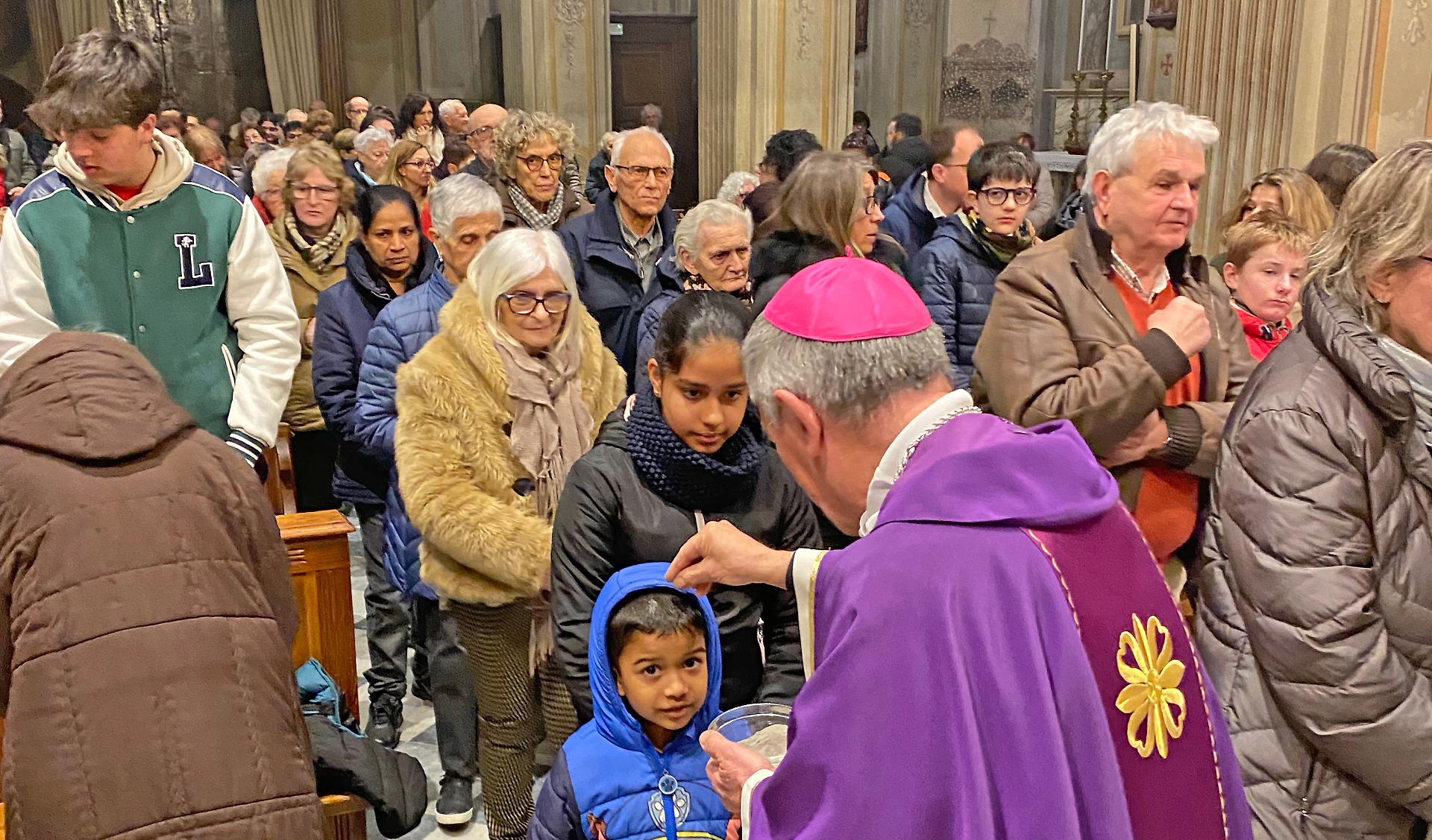 Riprendiamo dalle parole di mons. Miragoli il senso di questo rito. «Oggi entriamo nella Quaresima ripetendo un gesto antico e simbolico. Il gesto antico era un vero cospargersi, uno sporcarsi il capo, il volto, l’abito, un umiliarsi davanti agli altri, non nascondendo la propria situazione di persona afflitta, o colpevole, o che si umilia e supplica perdono e misericordia. La sostanza del gesto è rimasta, benché ora il gesto venga vissuto in maniera simbolica: un pizzico di cenere sul capo. Eppure molti fanno fatica a vivere questo gesto, forse proprio perché considerato poco attuale. Ma anche accettare questo è un atto di umiltà. Entrare nella quaresima rinnegando sé stessi, le proprie vedute, e accettando un gesto antico e semplice, ponendosi in quella lunga fila di penitenti che da duemila anni domanda perdono. Entrare nella quaresima per quella porta che la Chiesa mi spalanca, e non, ancora una volta, con la pretesa di scegliere io il cammino. Vale per l’inizio della quaresima, ma vale anche per il cammino che ci sta davanti».