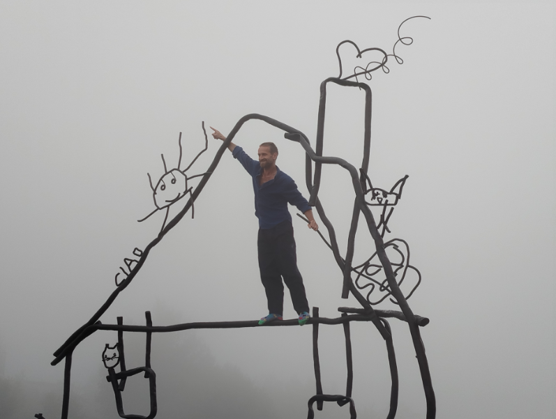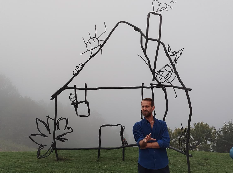 L’edificio scolastico, ormai deteriorato e pericolante, è stato abbattuto per lasciare spazio a un’area dedicata all’arte. Proprio da quei vecchi banchi è nata l’ispirazione per la scultura: l’artista ha recuperato i disegni realizzati dai bambini che frequentavano la scuola e li ha trasformati in una grande casa, costruita in ferro, una forma semplice e potente che richiama l’immaginario infantile, sulla quale ci si può anche arrampicare. “Abetare” – che in albanese significa “abecedario” – diventa così un ponte tra educazione, memoria e identità, restituendo nuova vita a un luogo che per decenni è stato punto di riferimento per la comunità rurale.