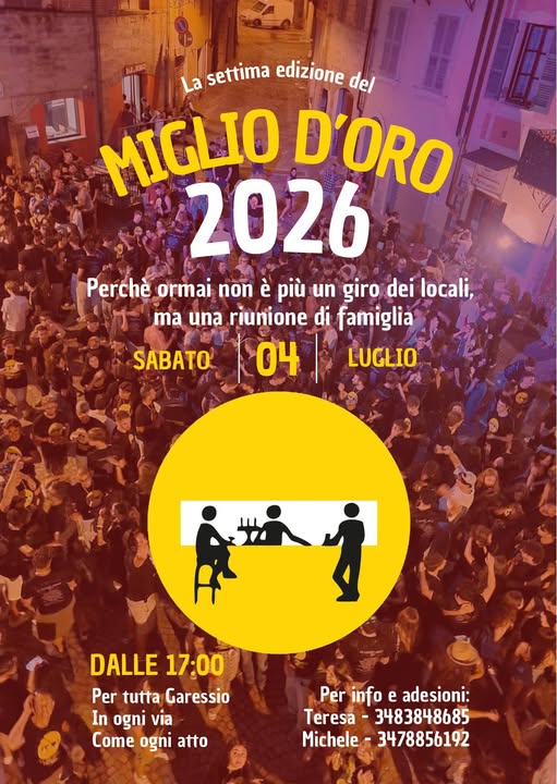 È stata ufficializzata la data della settima edizione del “Miglio d’Oro”: l’appuntamento è fissato per sabato 4 luglio 2026. Una data già segnata in rosso sul calendario da tanti affezionati che, anno dopo anno, hanno contribuito a far crescere una manifestazione diventata simbolo dell’estate garessina.