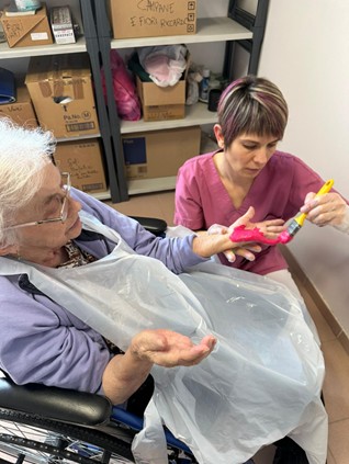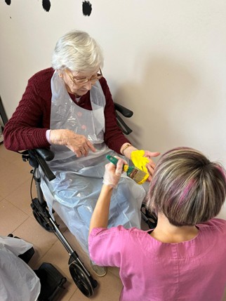 Da questo spirito di collaborazione e entusiasmo è nato anche il progetto della stanza di animazione, intitolato “Il Giardino delle Mani”. Le pareti stanno prendendo vita grazie a fiori colorati realizzati con le impronte delle mani degli ospiti, ciascuno diverso e unico.