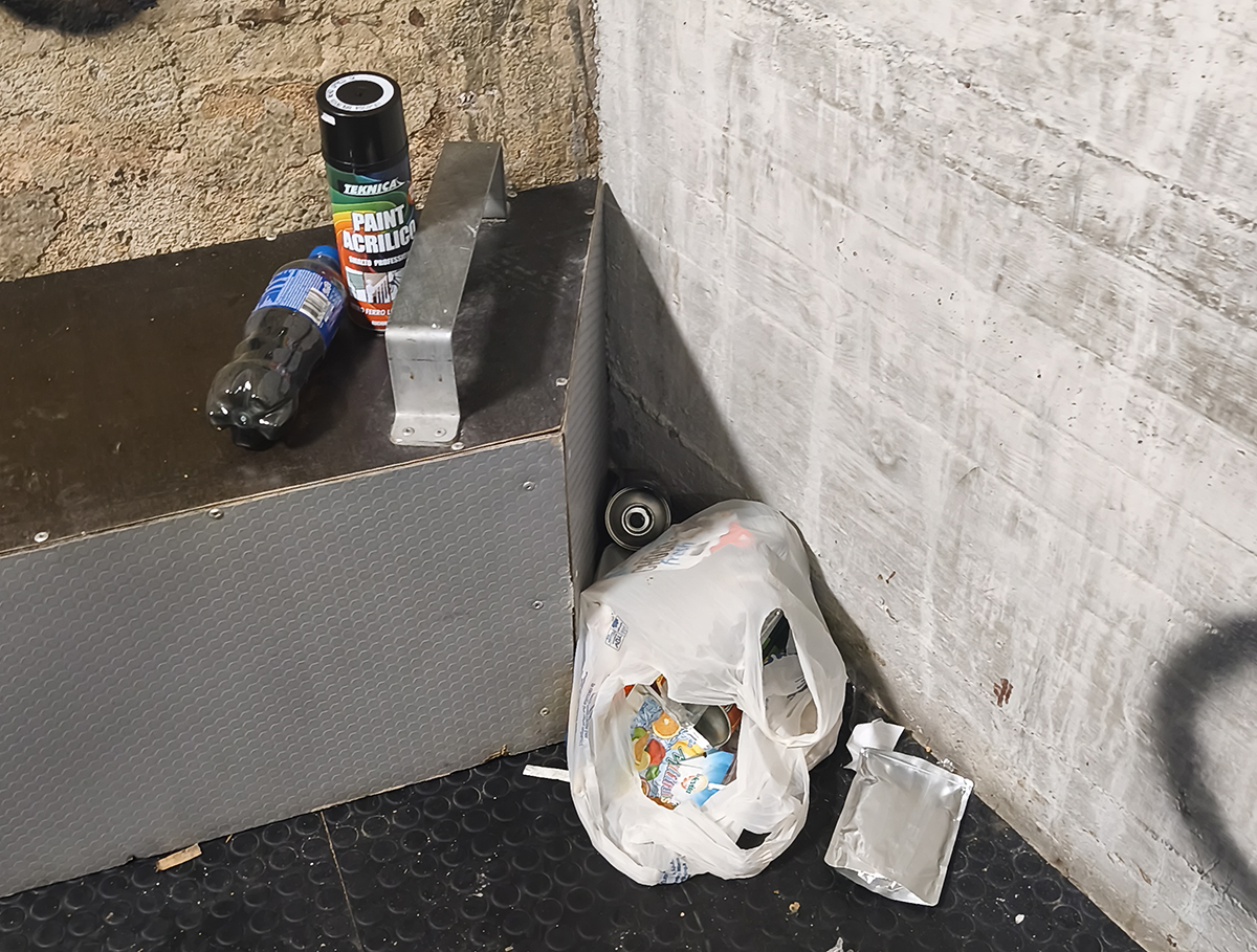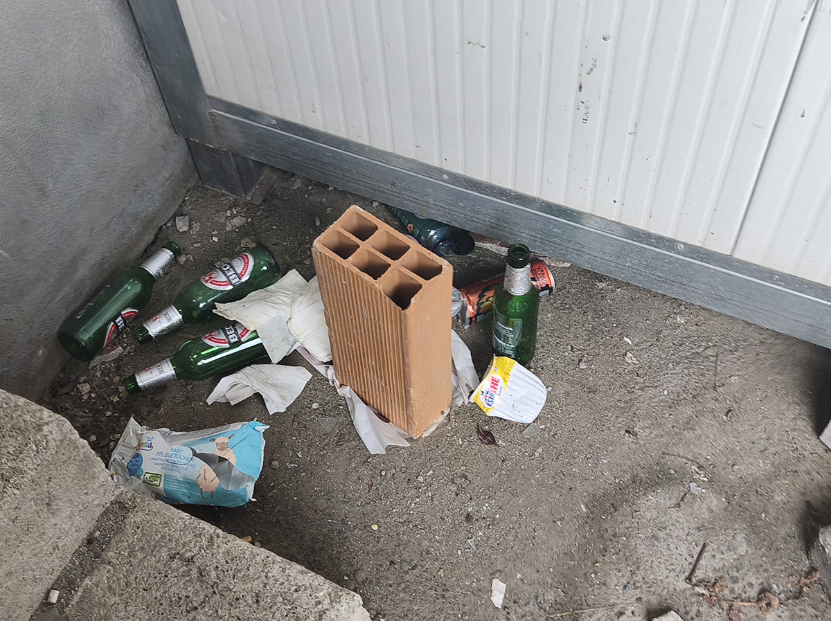 Bottiglie di birra, lattine, bottiglie di plastica di acqua o altre bevande, perfino cartoncini di succhi di frutta. Borse della spesa colme di rifiuti, avanzi di cibo, sigarette e urina per terra e contro un muro.