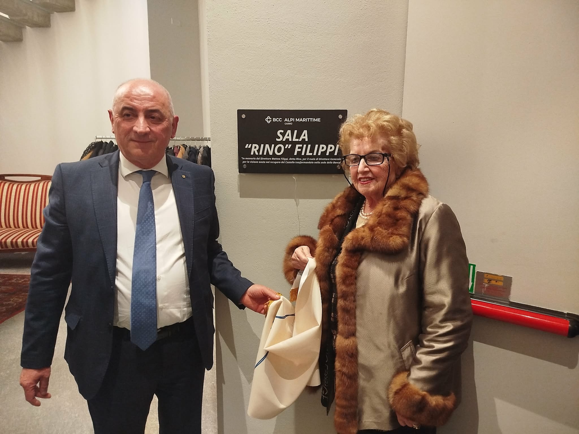 Da parte del primo cittadino e dei vertici della Banca, unanime è stato il ricordo del compianto storico direttore Rino Filippi, colui che per primo portò la sede dell'istituto di credito nel sontuoso castello. Proprio alla figura di Rino Filippi è stata dedicata la nuova sala. L'intervento del prof. Ernesto Billò, incentrato proprio su Filippi, ha contribuito a dare maggior pregio all'iniziativa.