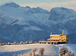 Il Sacrario partigiano di Bastia e, nel riquadro, il presidente Mattarella