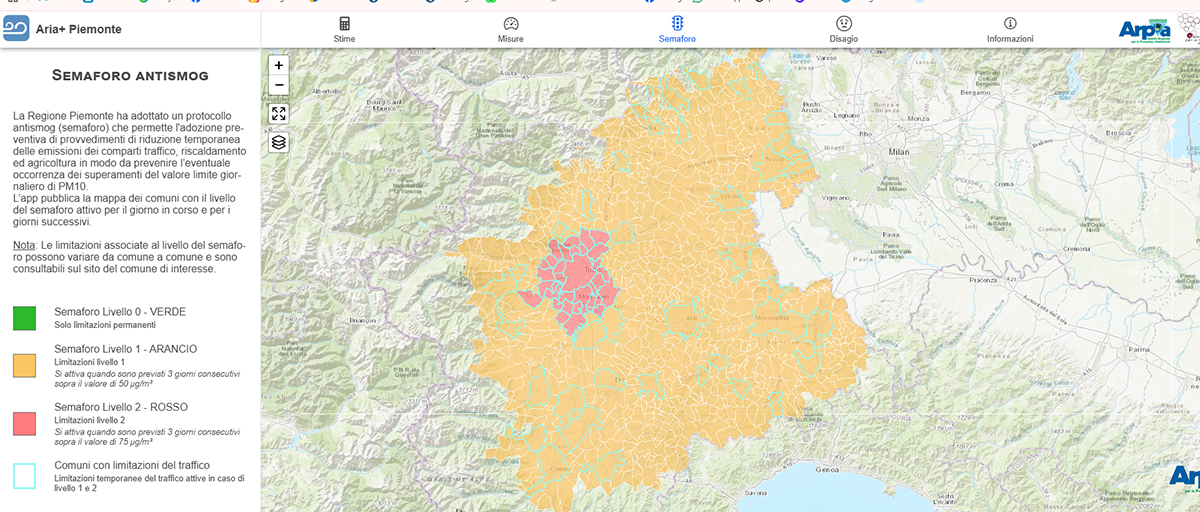 Risultato: da domani in tutta la regione scatta il livello "arancione" di allerta antismog, con la cintura torinese addirittura in "rosso":