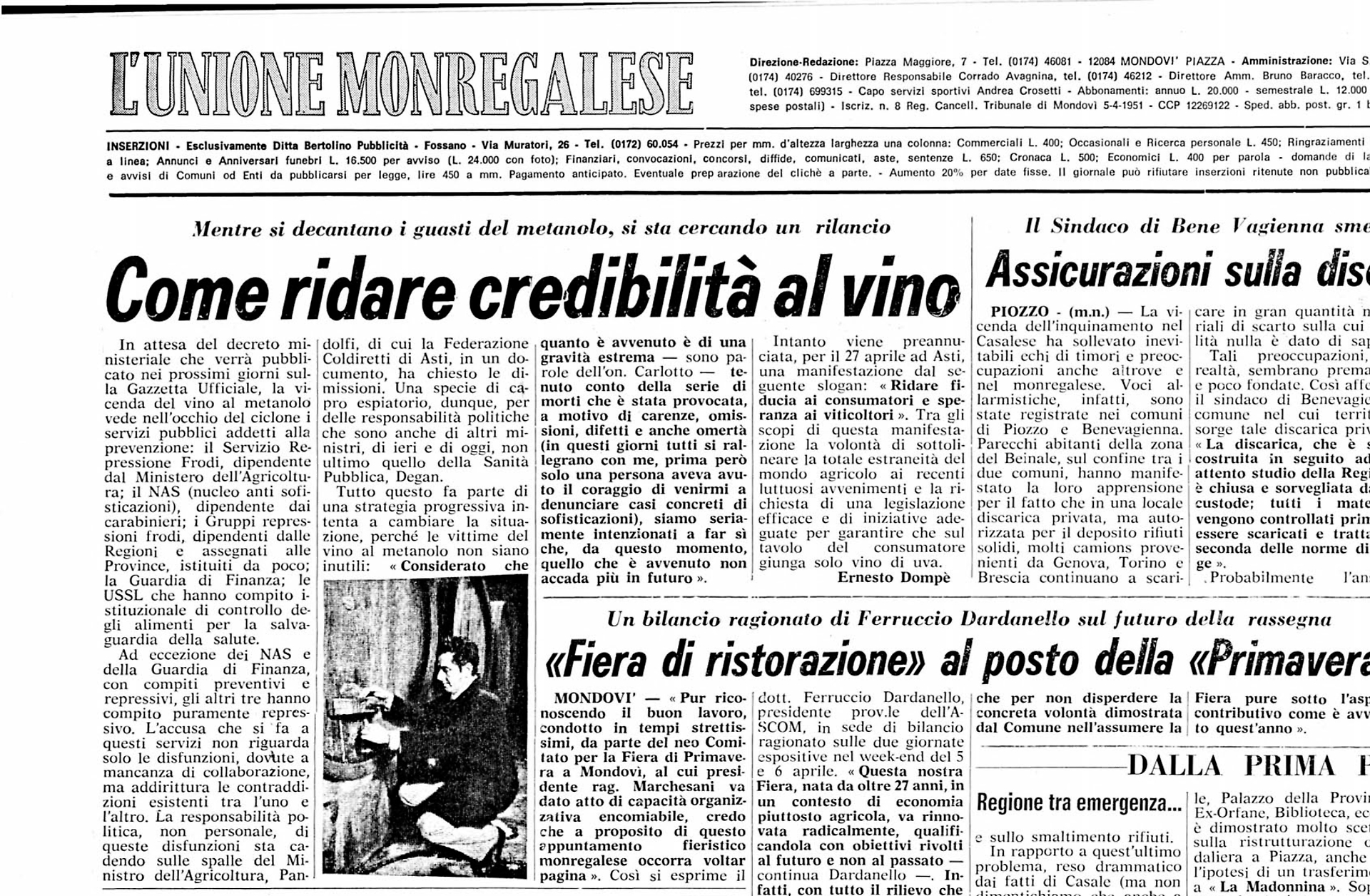 Il vino al metanolo spunta in Puglia, Lombardia, Veneto, Piemonte… un sistema criminale messo in piedi da chi era disposto «a smerciare un prodotto anche dubbio, pur di guadagnare con facilità – ricordava "L'Unione Monregalese" di allora». È difficile credere che una frode del genere fosse completamente ignorata da chi in qualche modo è stato al gioco: forse non negli effetti letali che poi si sono verificati, ma certamente nelle sue componenti di non genuinità.