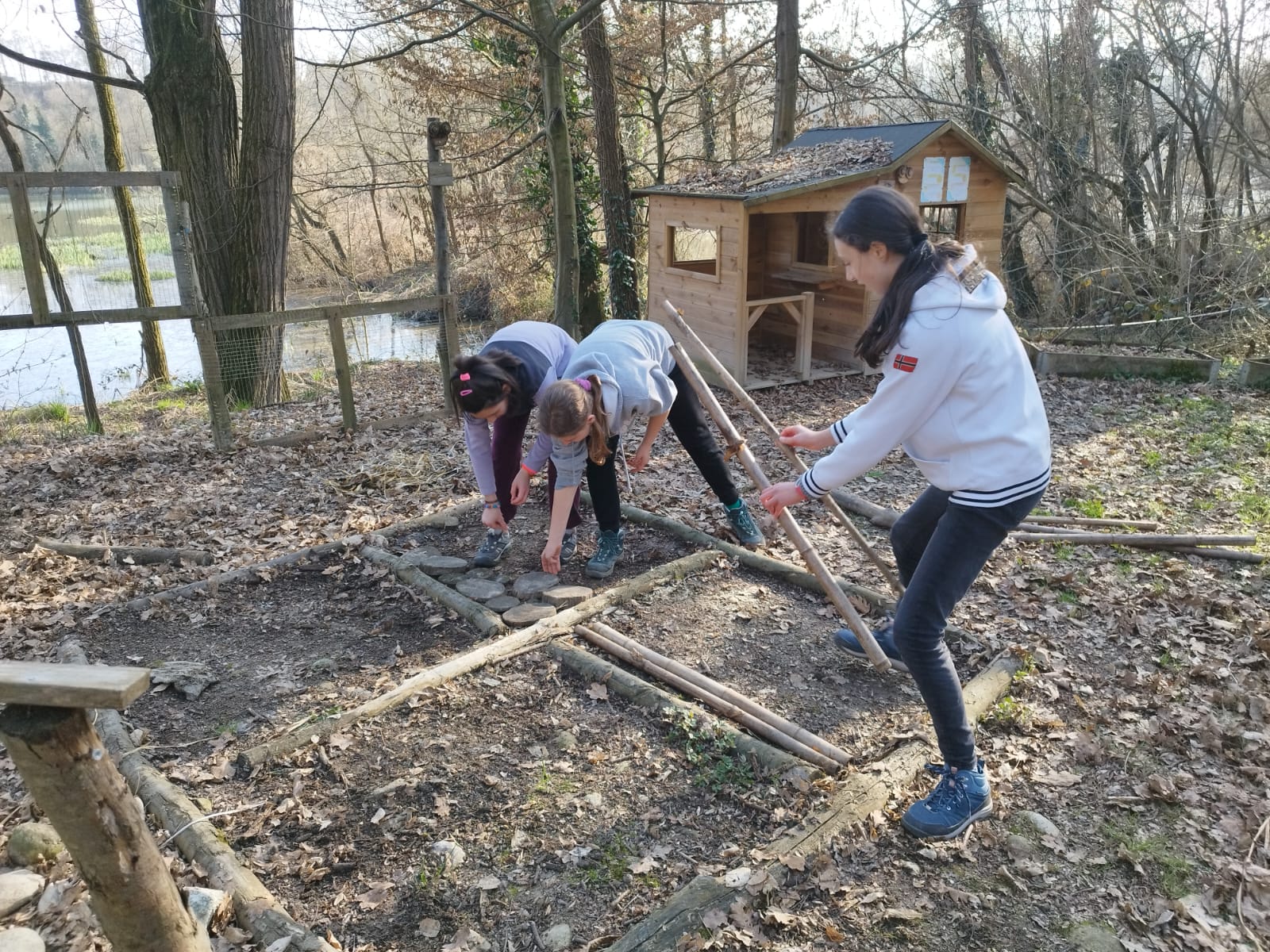 L’impegno non si è fermato qui. Nei pressi della foresteria, infatti, sono stati preparati anche alcuni piccoli rifugi per la fauna selvatica, utilizzando rami e tronchi recuperati direttamente sul posto. Le cataste sono state realizzate disponendo i pezzi più grandi alla base e, sopra, via via quelli più piccoli: strutture semplici ma estremamente utili per offrire riparo a insetti, piccoli mammiferi e ad altri abitanti del bosco.