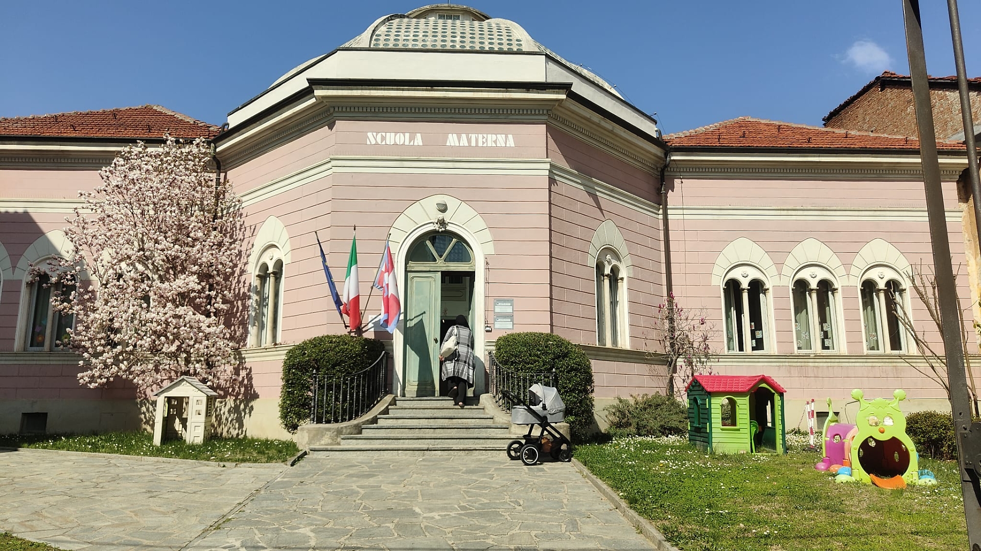 L’edificio della nuova Scuola materna sta per essere completato in via Scuole Medie, proprio a fianco della Scuola secondaria di primo grado. Poco oltre si trovano il campetto e la Scuola primaria, riuniti in un unico grande polo scolastico. Accoglierà presumibilmente i primi bimbi a partire dall’anno scolastico 2027-28.
