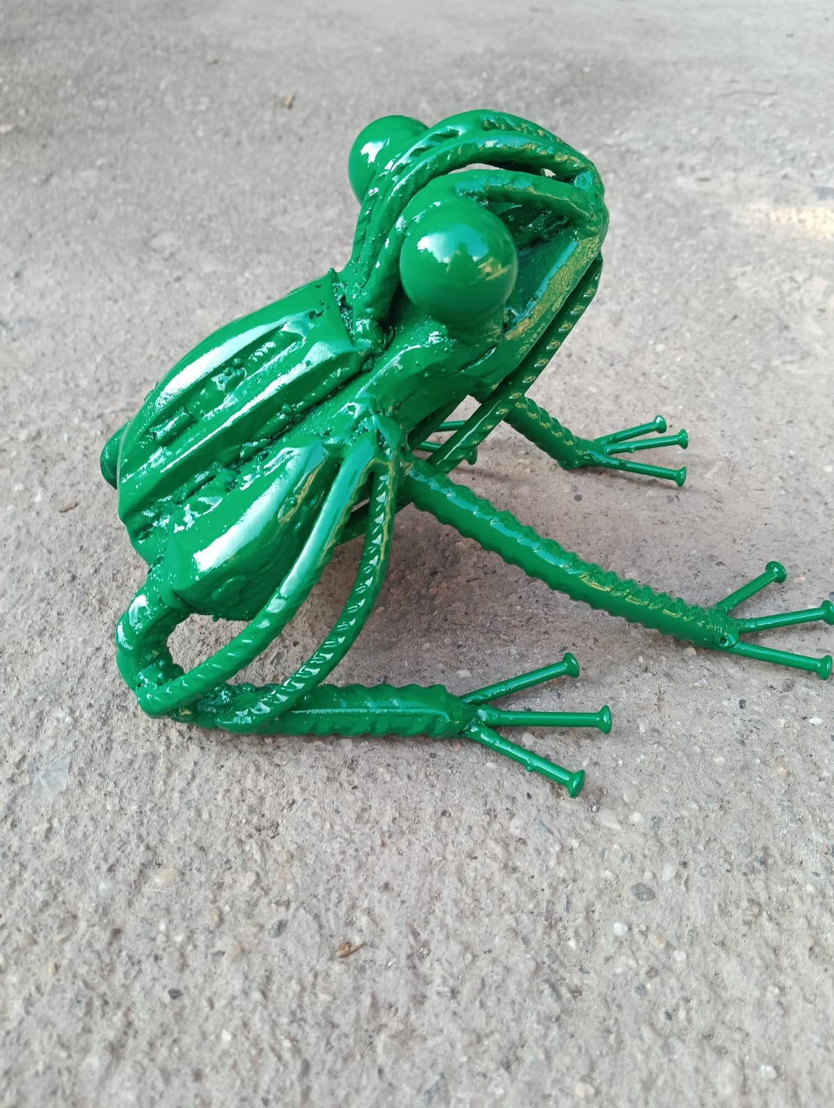 Ma è con la sua ultima creazione che Bertone torna a ribadire con forza la sua poetica: dare nuova vita a ciò che è stato dimenticato. Recuperando bulloni, tondini e frammenti di ferro abbandonati, pezzi che giacevano inutilizzati tra cortili e magazzini, spesso nascosti dalla vegetazione, l’artista ha realizzato una vivace rana verde. L’opera, dinamica e quasi pulsante, sembra pronta a spiccare un balzo da un momento all’altro, come se potesse davvero dirigersi verso l’acqua più vicina.