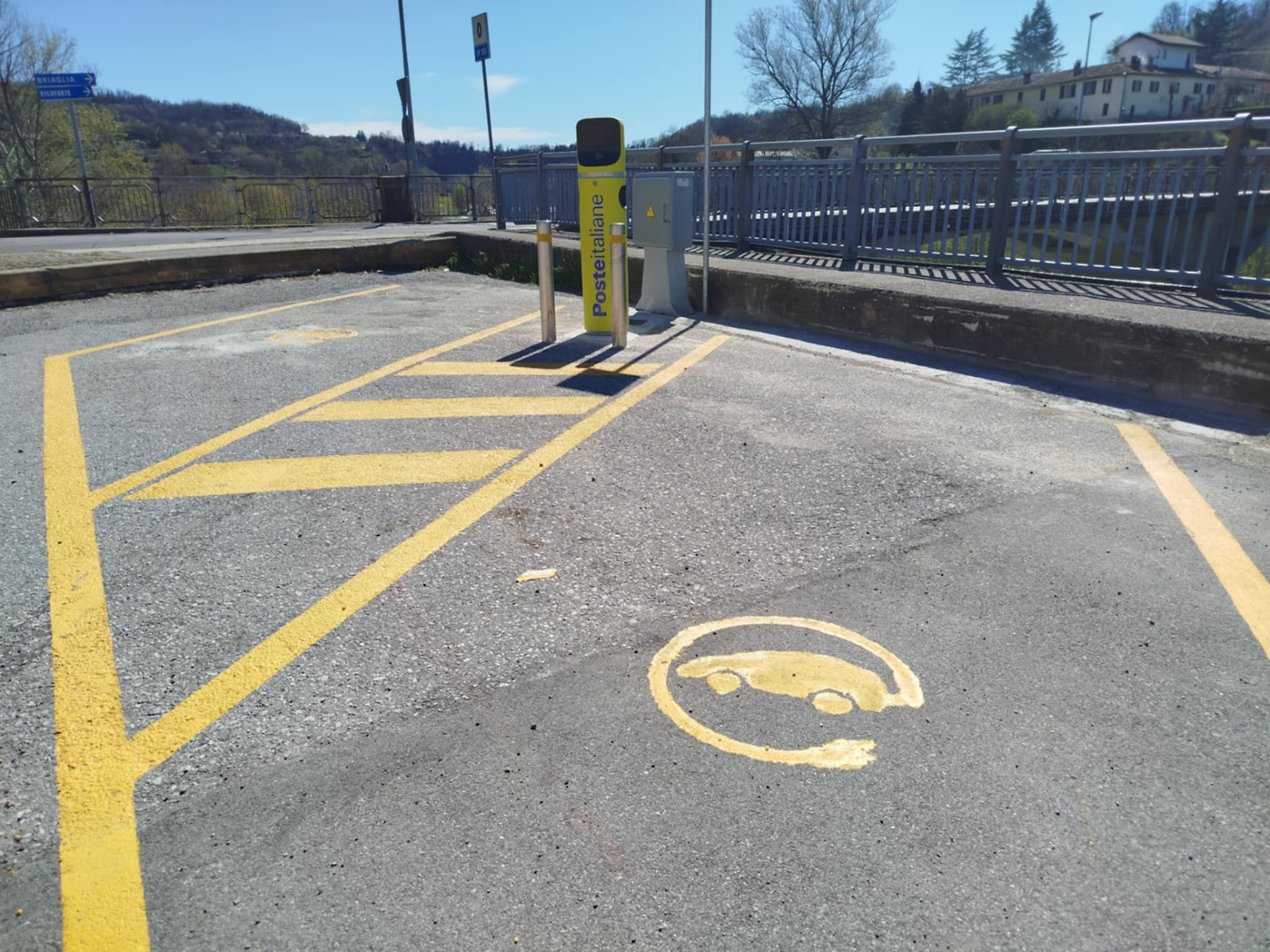 La colonnina è stata installata da Poste Italiane nell'area a destra dell’imbocco del ponte sul Tanaro, in una posizione particolarmente strategica: a pochi passi dalla Fondovalle Tanaro (SP12), risulta infatti facilmente accessibile anche per gli automobilisti di passaggio.