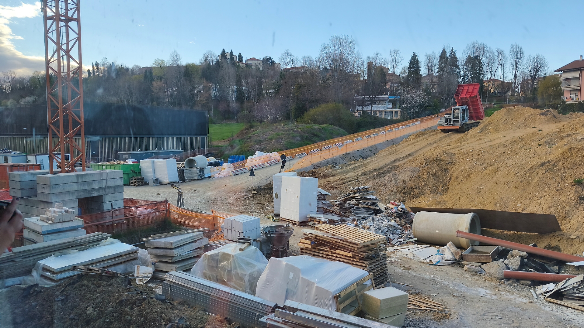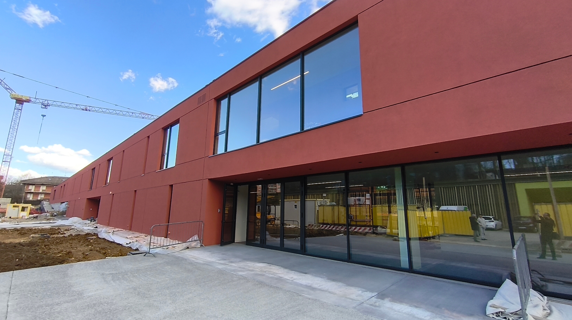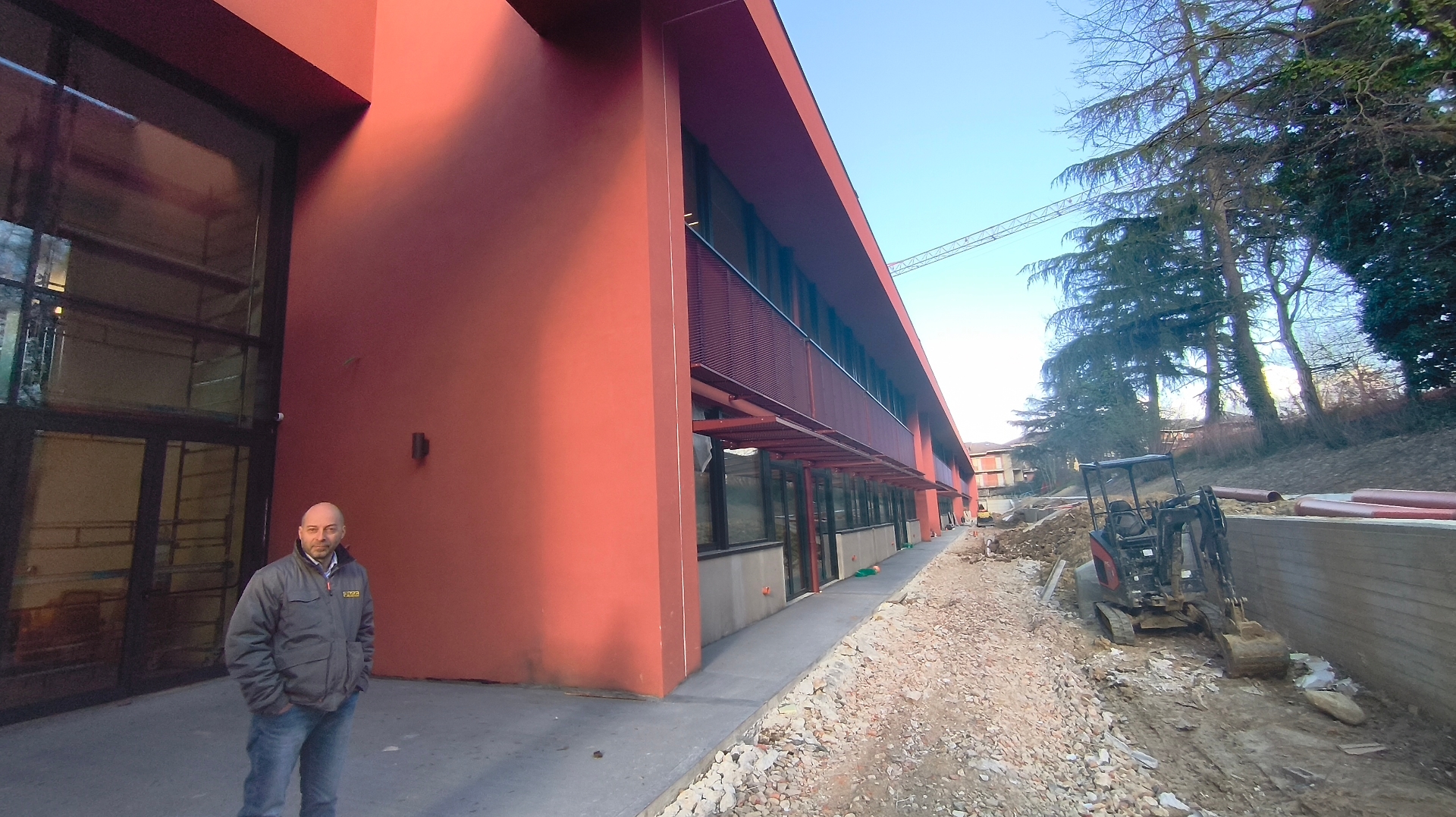 La strada di accesso che oggi è destinata ai mezzi di cantiere sarà in futuro carrabile e utilizzabile anche dalle auto; la terra di scavo verrà asportata e utilizzata per ripianare la zona di abbattimento della vecchia sede: