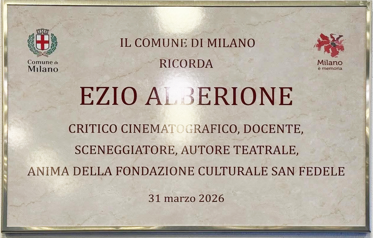 Anche la città di Milano ha fatto la sua parte, con la posa della targa in sua memoria all'ingresso della Fondazione in via Hoepli 3/B, all’ingresso della Fondazione. Era presente l'assessore Tommaso Sacchi, in rappresentanza dell'Amministrazione milanese, i familiari di Ezio, Marì e Guido, il presidente del Municipio 1 Mattia Abdu, il presidente del Centro "San Fedele" padre Flavio Bottaro e tanti amici intervenuti per ricordarlo, tra cui il notissimo critico cinematografico Gianni Canova e il popolare cabarettista, attore e scrittore Giacomo Poretti, storico frequentatore del centro. «Originario di Chiusa Pesio, in provincia di Cuneo, Alberione ha trovato a Milano il contesto ideale per sviluppare e ampliare la propria attività. Con la nostra città ha instaurato un rapporto profondo e reciproco: Milano gli ha offerto opportunità e stimoli, ed egli ha restituito alla città un contributo culturale vivo, dinamico, capace di coinvolgere generazioni diverse – ha dichiarato l’assessore Sacchi –. La targa che oggi abbiamo scoperto non è soltanto un segno di memoria, ma un riconoscimento concreto del legame tra Ezio Alberione e questa città, e del valore del suo impegno nel costruire spazi di confronto aperti e inclusivi».