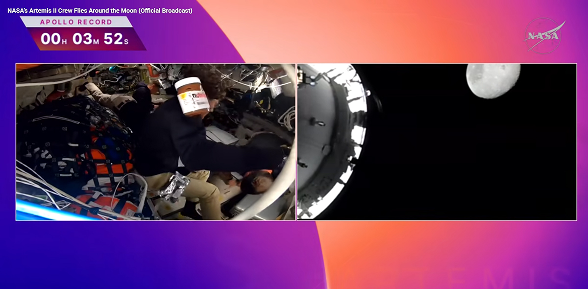 La "comparsata" della Nutella è arrivata, peraltro, in uno dei momenti più "importanti" di tutto il viaggio: pochi minuti prima del superamento del record di sempre di distanza dalla terra, uno dei "passaggi" chiave della missione Artemis II.