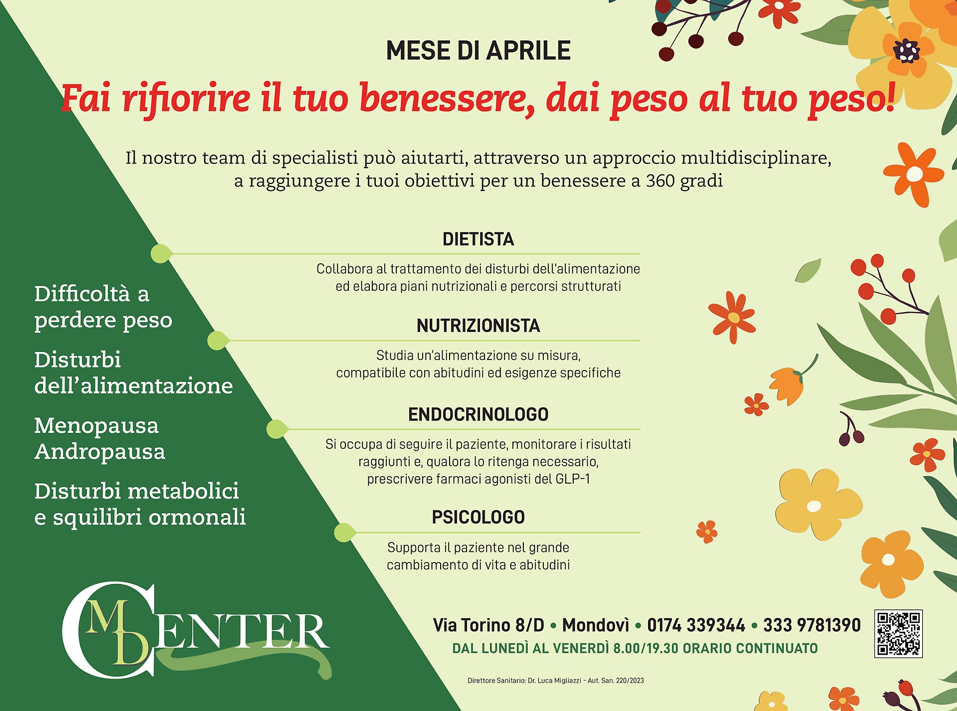 Aprile è il mese della rinascita, il momento perfetto per far rifiorire anche il proprio benessere. MD Center di Mondovì offre un percorso verso una migliore forma fisica e mentale che parte da un elemento fondamentale: un team di specialisti che lavora insieme per la persona.
