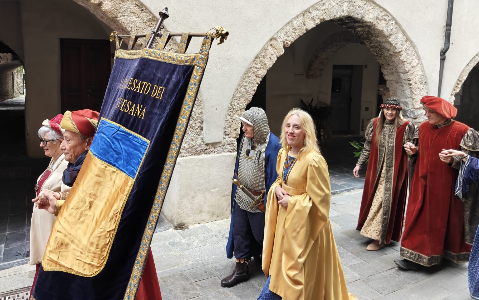 Questa mattina, domenica 12 aprile, Zuccarello, nel Savonese, si è animata con una partecipata rievocazione storica. L’evento, promosso dall’Associazione Internazionale Regina Elena Odv, celebra due importanti ricorrenze: il 700° anniversario delle nozze tra Enrico Del Carretto e Caterina di Clavesana e l’anniversario della consegna, nel 1937, dell’ultima Rosa d’Oro della Cristianità alla Regina Elena del Montenegro.