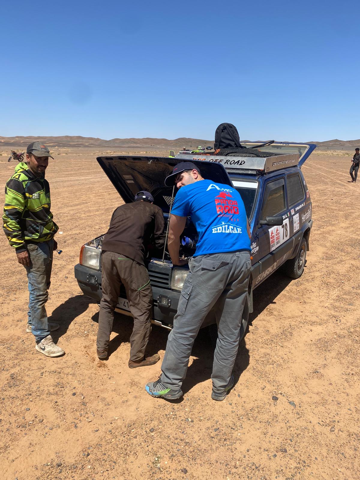 Mauro e Andrea Spinardi oggi, nel deserto del Marocco con la loro Panda