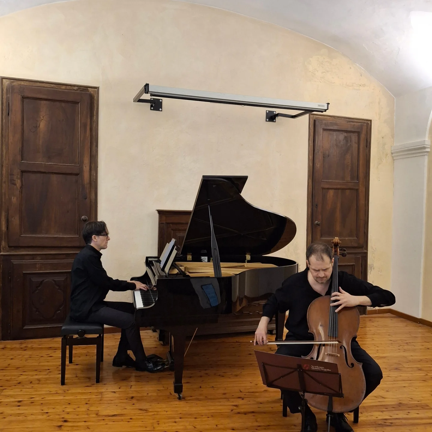 Un ottimo riscontro di pubblico ha salutato, in sala Pugnani, l’esibizione del violoncellista Lamberto Curtoni e del pianista Giovanni Doria Miglietta, protagonisti del concerto “Alma Latina”. Il programma dell’appuntamento ha offerto un viaggio coinvolgente nel repertorio sudamericano del Novecento, da Alberto Ginastera ad Astor Piazzolla ed Heitor Villa-Lobos. Un appuntamento suggestivo, con un ospite d’eccezione: il fisico climatologo del CNR Antonello Pasini, ospite dell’Associazione “Amici dell’Academia”. Durante l’intervallo, la consigliera Angioletta De Giorgis, in dialogo con il professore, ha guidato un momento di riflessione in cui si è parlato di clima, dei sistemi complessi e dell’importanza di mettere in relazione i due emisferi cerebrali, razionale ed emotivo, offrendo spunti di approfondimento.-1776758186851.jpeg)