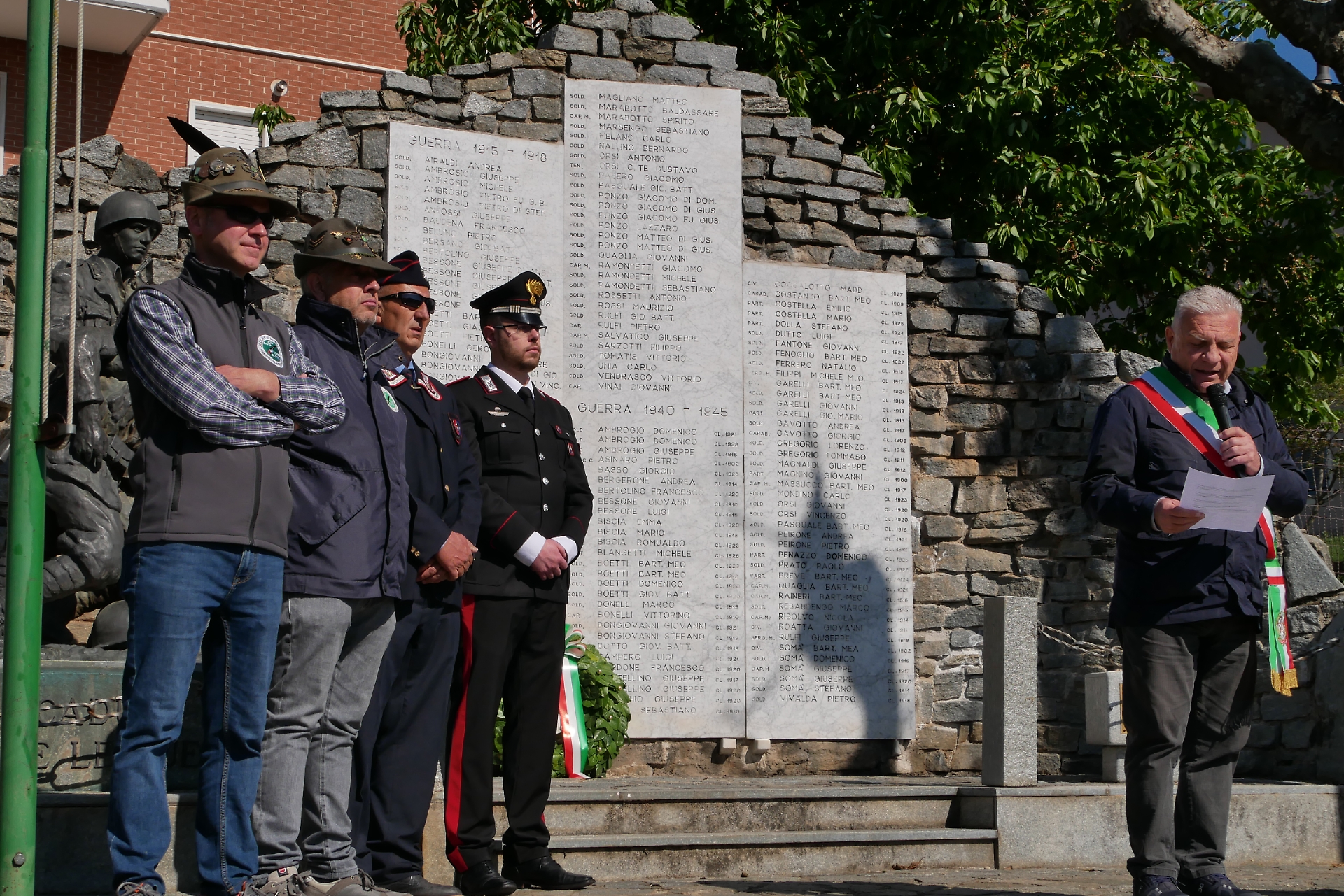 A prendere la parola anche il consigliere Bessone della sezione A.N.A. di Mondovì: «Come associazioni d'Arma abbiamo l'obbligo morale di fare memoria della storia. Chi fa ciò trasmette un ricordo ed un insegnamento: se noi oggi siamo liberi è perché qualcuno prima di noi si è sacrificato per questa libertà».