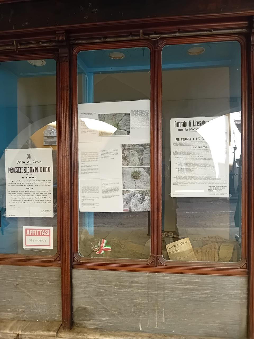 In via Marenco, grazie alla disponibilità dei proprietari di due negozi, sono stati allestiti spazi espositivi dedicati alla Resistenza, con fotografie di partigiani cebani, oggetti, documenti ed equipaggiamenti che raccontano una pagina fondamentale della storia.