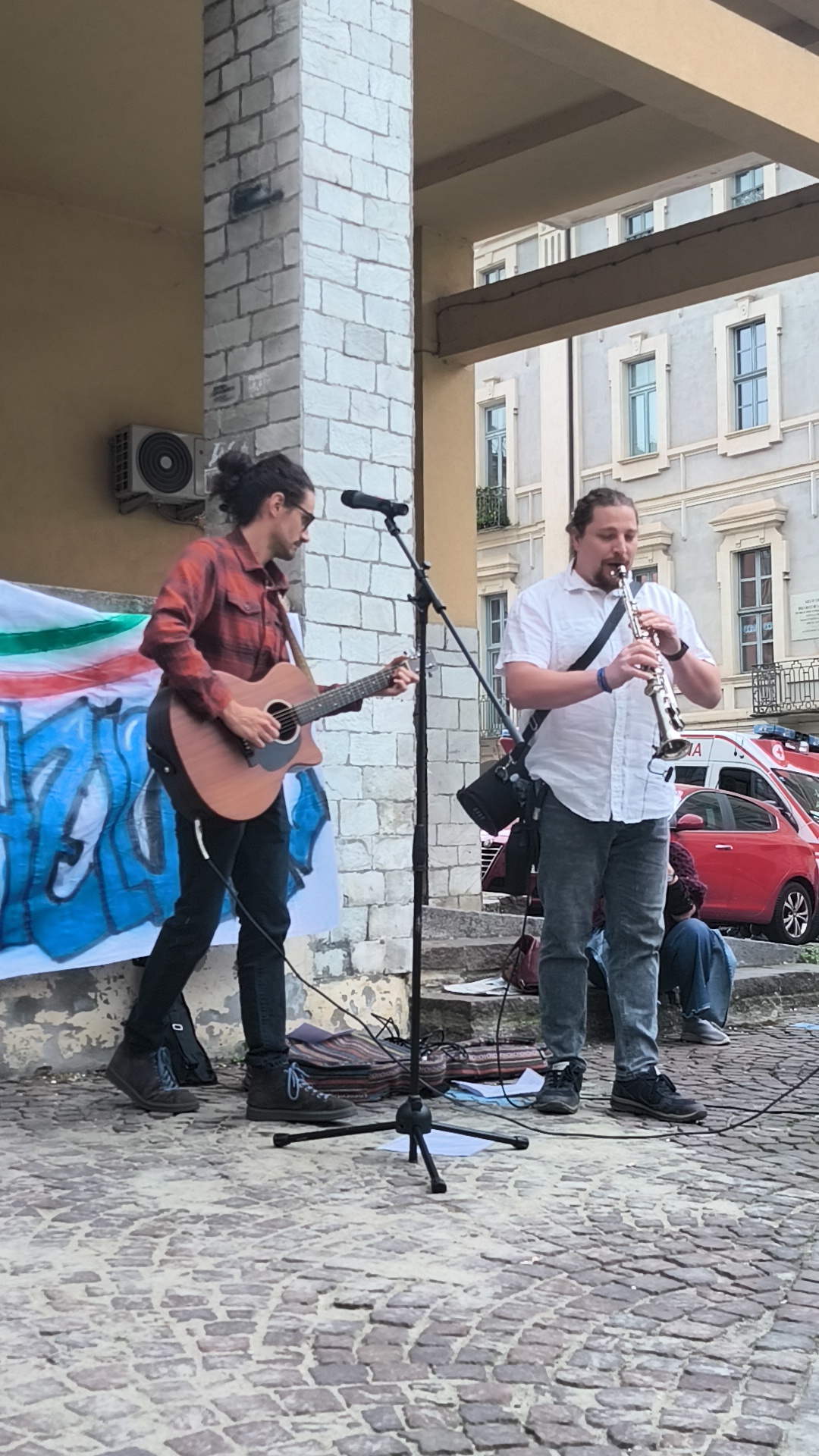 Il corteo è cominciato in piazza Santa Maria Maggiore, dove gli studenti e i prof hanno intonato "Bella Ciao", ed è proseguito lungo le vie di Breo, fino a piazza XXIX Aprile.